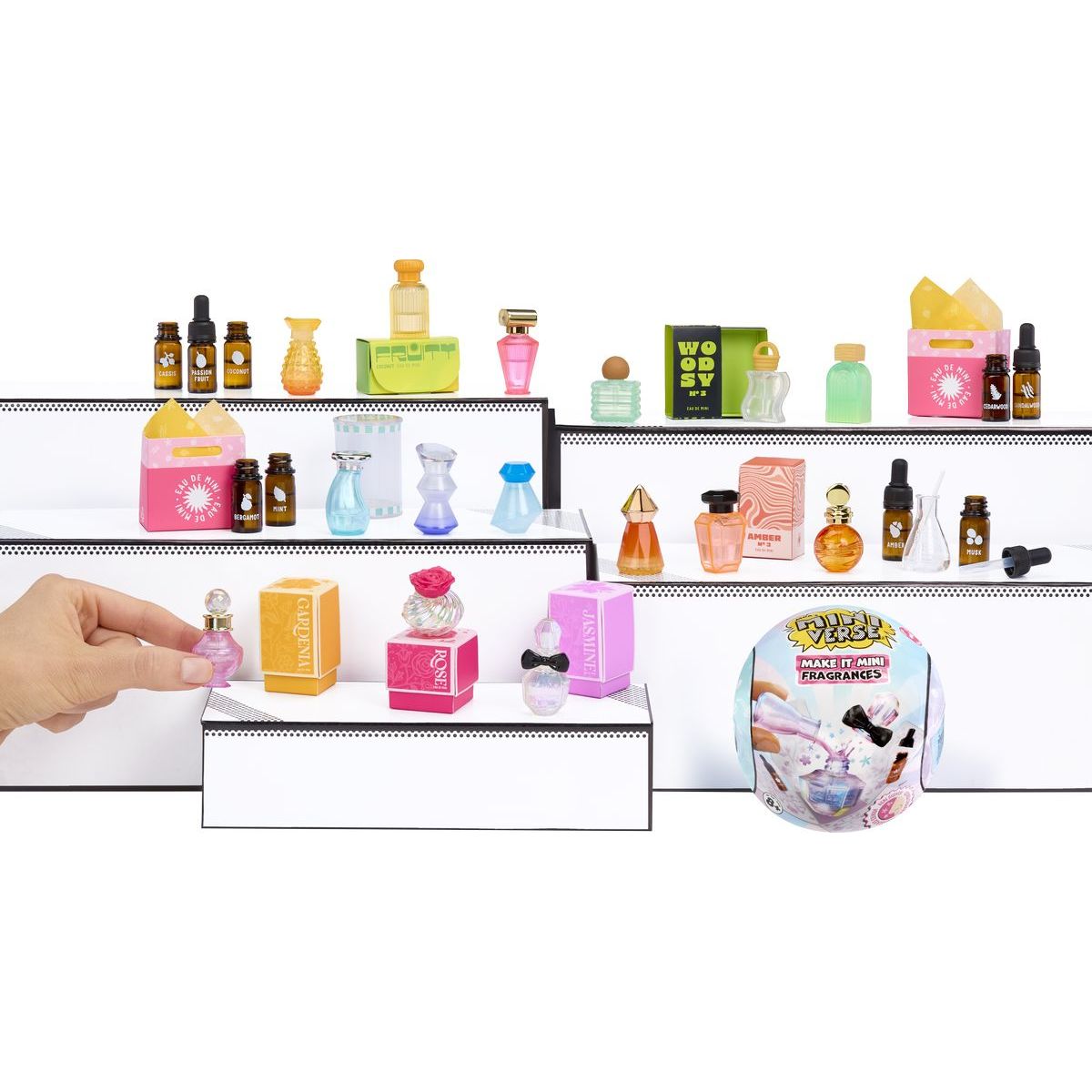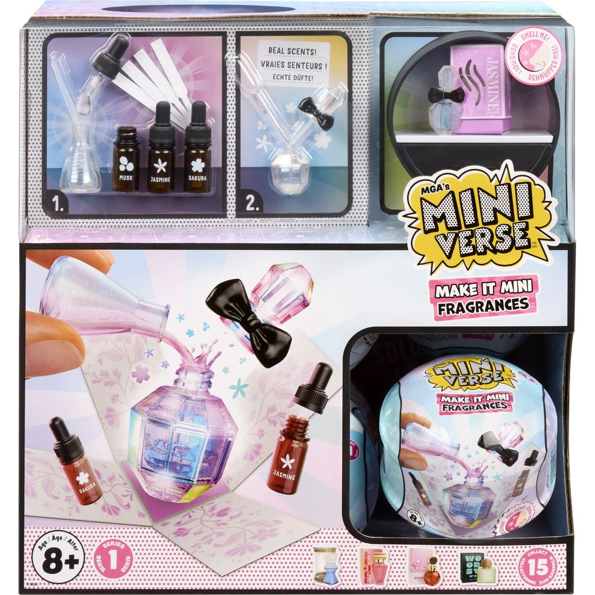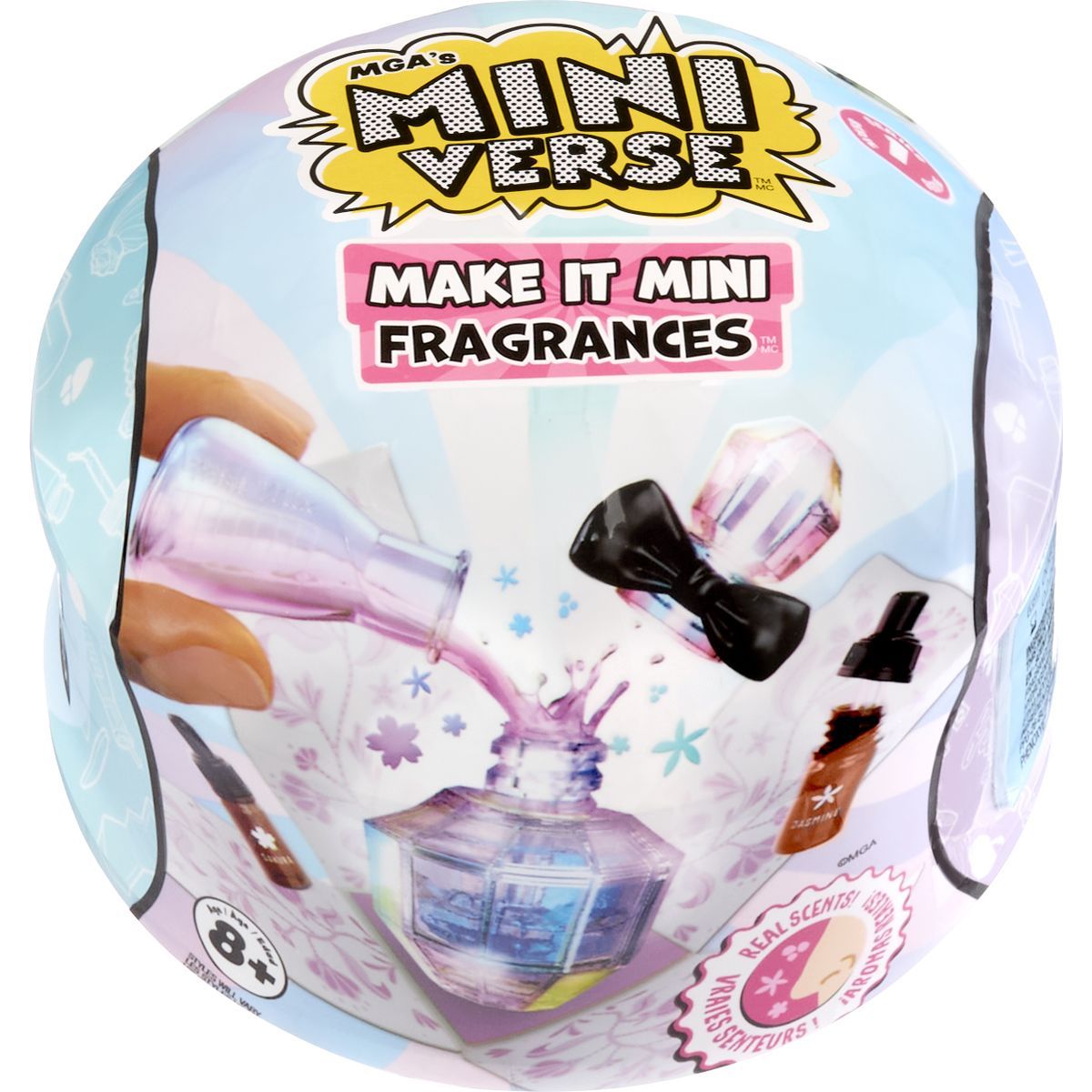 Ponor sa do sveta vôní s MGA's Miniverse – Make it Mini Vône! Táto kreatívna sada ti umožní vyrobiť si vlastné malé parfumy pomocou troch fľaštičiek so zložkami pre vrchný tón, srdce a základ.