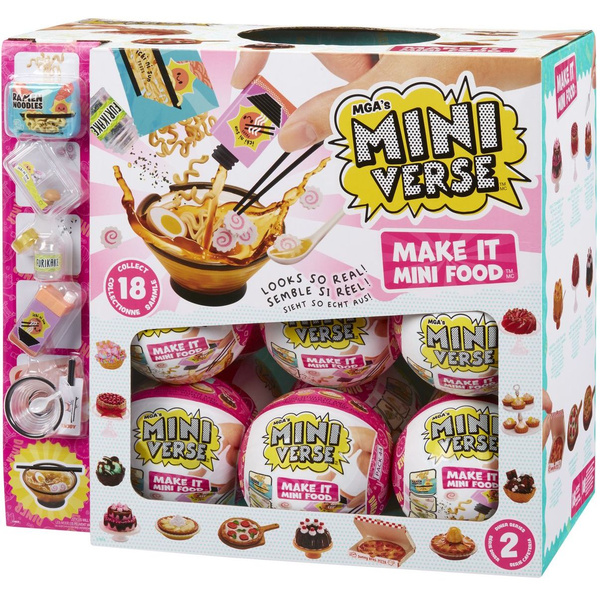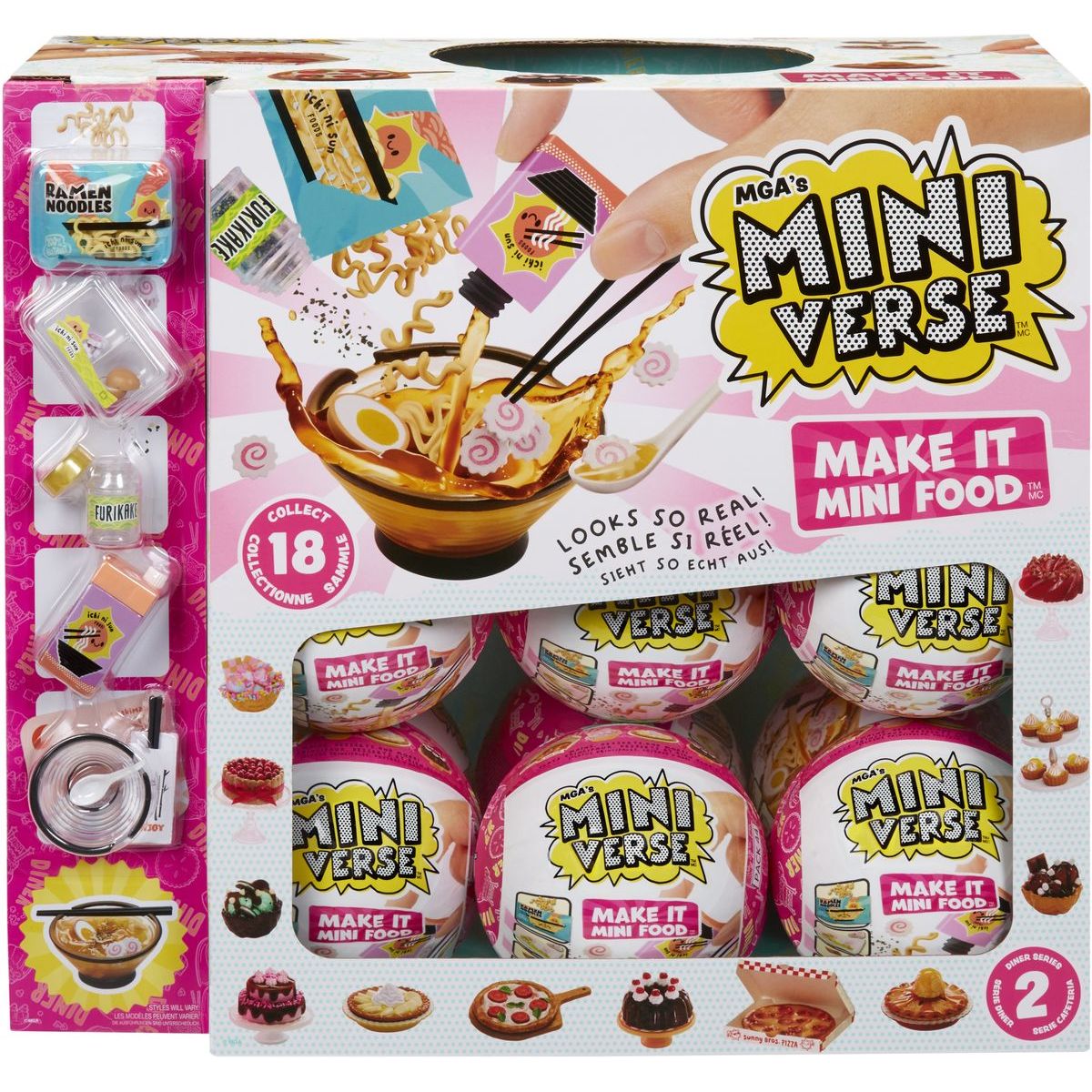 MGA’s Miniverse – Mini Food Občerstvenie séria 2B prináša svet miniatúrnych dobrôt, ktoré vyzerajú takmer ako skutočné. Každé balenie ukrýva prekvapenie v podobe realistického mini jedla alebo nápoja, ktoré si deti samy pripravia krok za krokom.