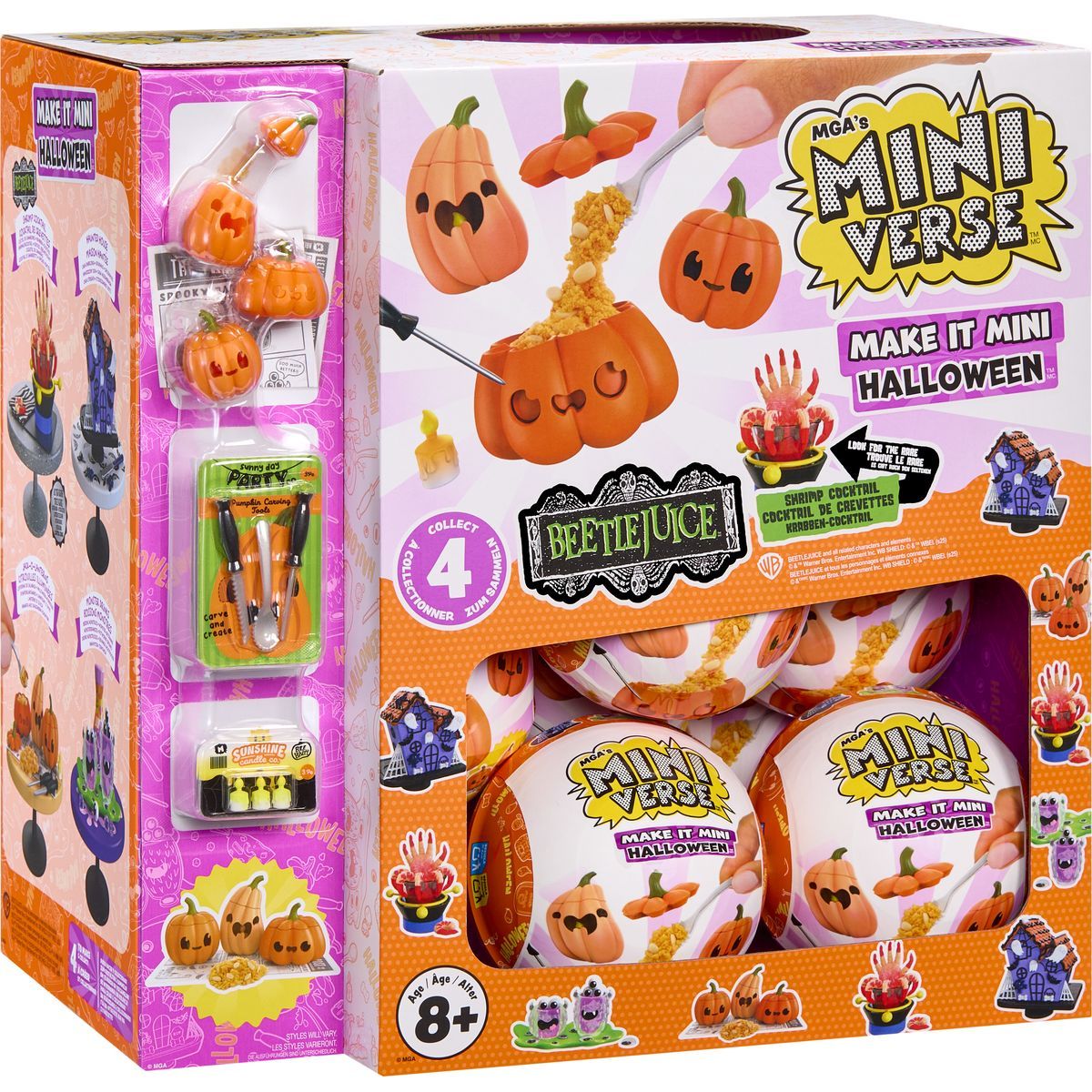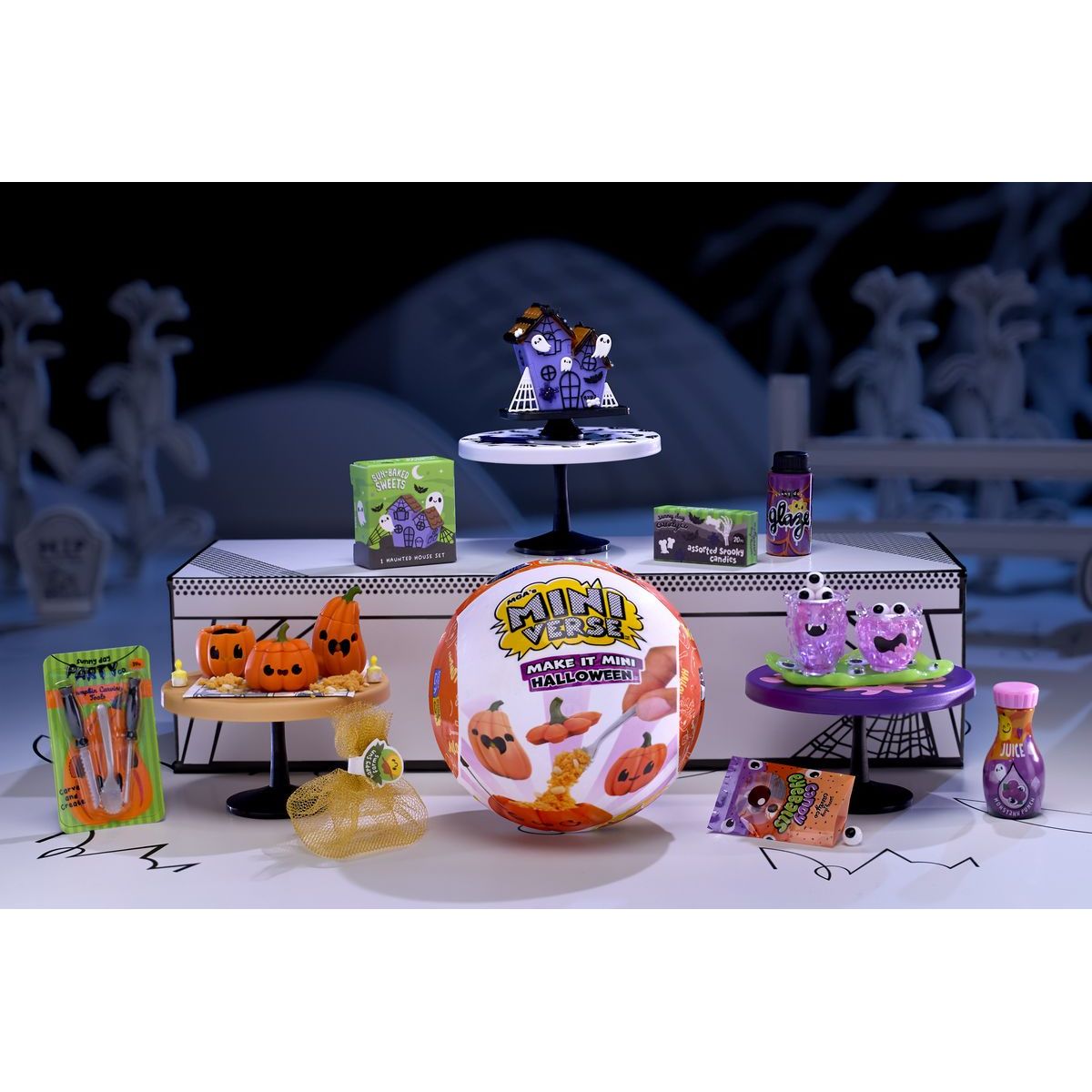 Vyrob si malé strašidelné jedlo alebo nápoj so zábavnou sadou Miniverse! Môžeš vytvoriť strašidelný domček, vyrezávané tekvice alebo nápoj duchov – všetko v malej veľkosti, no s krásnymi detailmi. Nechaj svoje výtvory chvíľu na slnku alebo pod UV svetlom stuhnúť a potom ich môžeš ukázať kamarátom! Súčasťou je aj pinzeta pre jednoduchú prácu s malými časťami. Zaži veľa radosti pri tvorbe svojich vlastných mini dobrotiek.