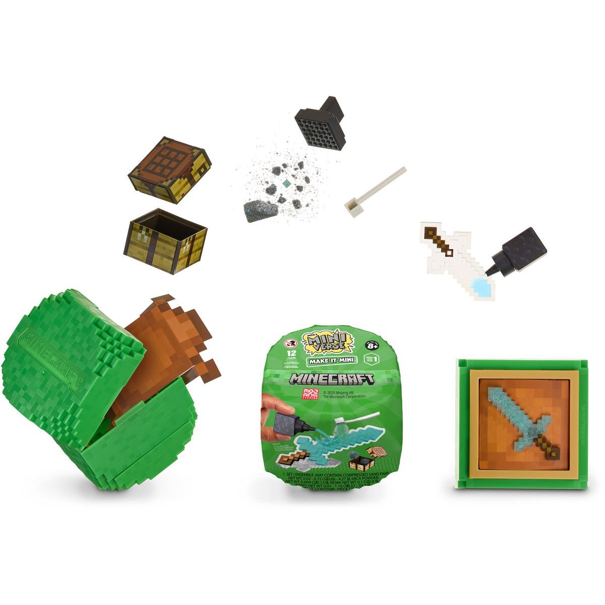 Máte doma malého tvorcu? S MGA's Miniverse - Urob to mini Minecraft môže vyrobiť vlastné malé poklady z obľúbenej hry Minecraft! V balení nájdete všetko potrebné na výrobu realistických miniatúrnych predmetov ako drevená sekera alebo diamantový meč. Po pár minútach na priamom slnku alebo pod UV svetlom bude možné vaše výtvory vystaviť napríklad na poličke. Séria obsahuje celkovo 12 rôznych miniatúr – skvelá zábava pre deti od 8 rokov, ktorá rozvíja kreativitu a trpezlivosť.