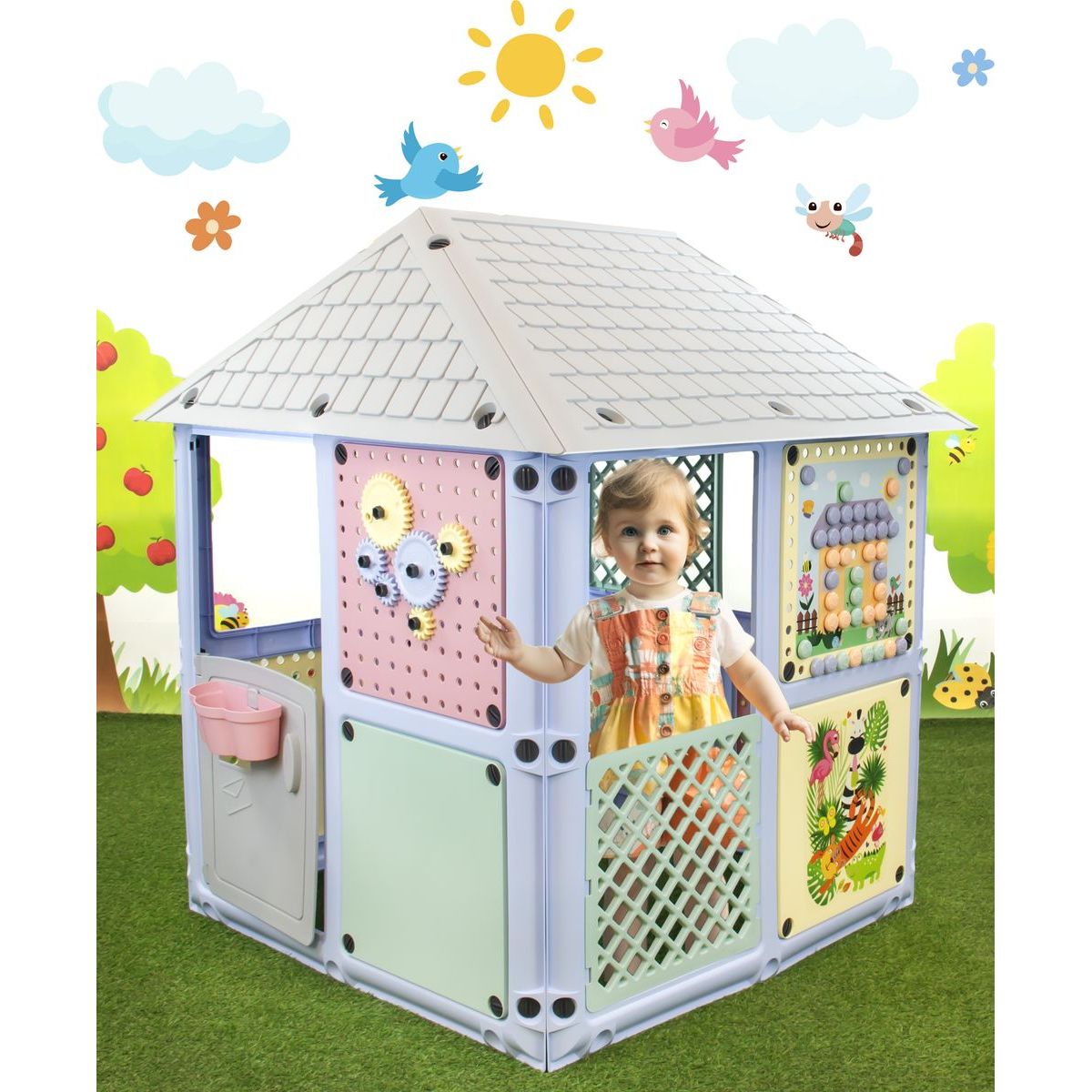 Tento úžasný záhradný domček ponúkne vašim deťom množstvo zábavy a priestoru na kreatívnu hru. Perfektné pre rodinné záhradné dobrodružstvá!