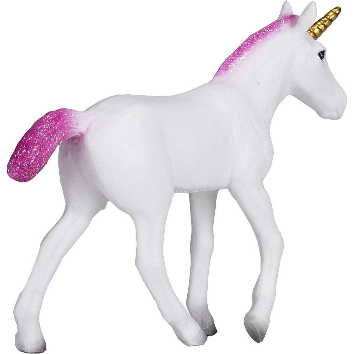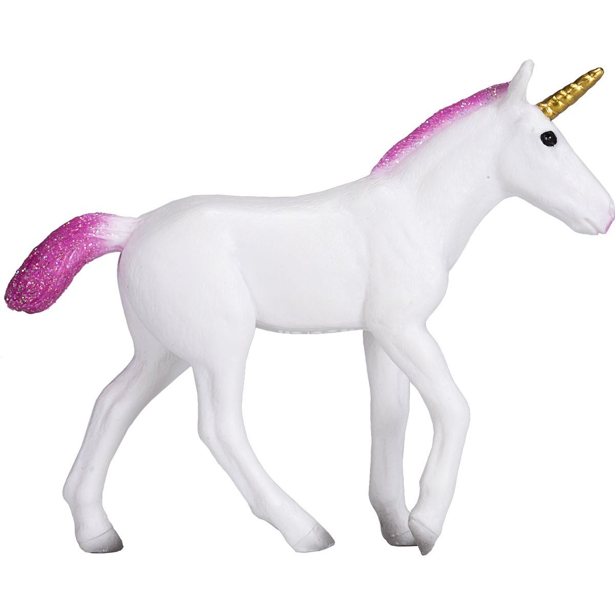 Magická figúrka ružového jednorožca, symbolu kúzla a krásy. Tento detailne spracovaný jednorožec, s jemne lesklou ružovou hřívou a rohom, ktorý sa vinie do špirály, zachytáva kúzelný a fantazijný svet. Vhodný pre zberateľov, fanúšikov rozprávok alebo ako hračka pre deti.