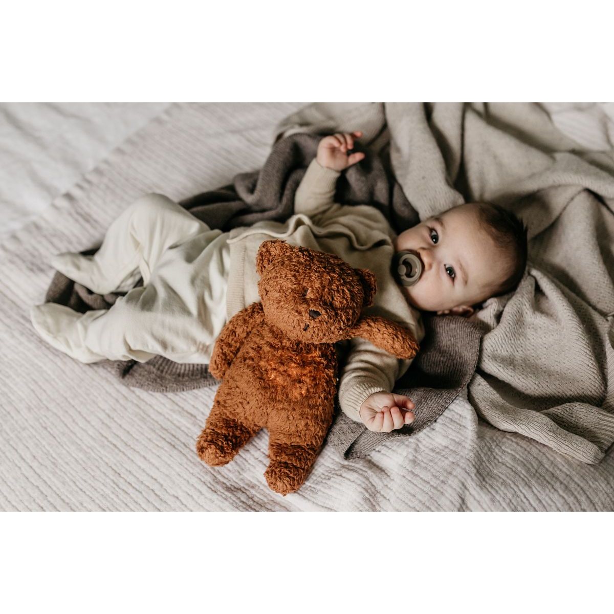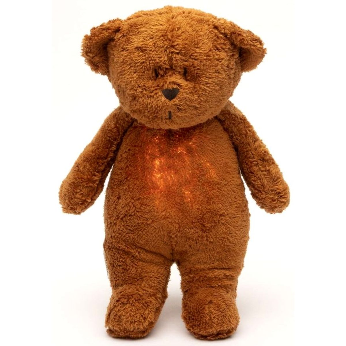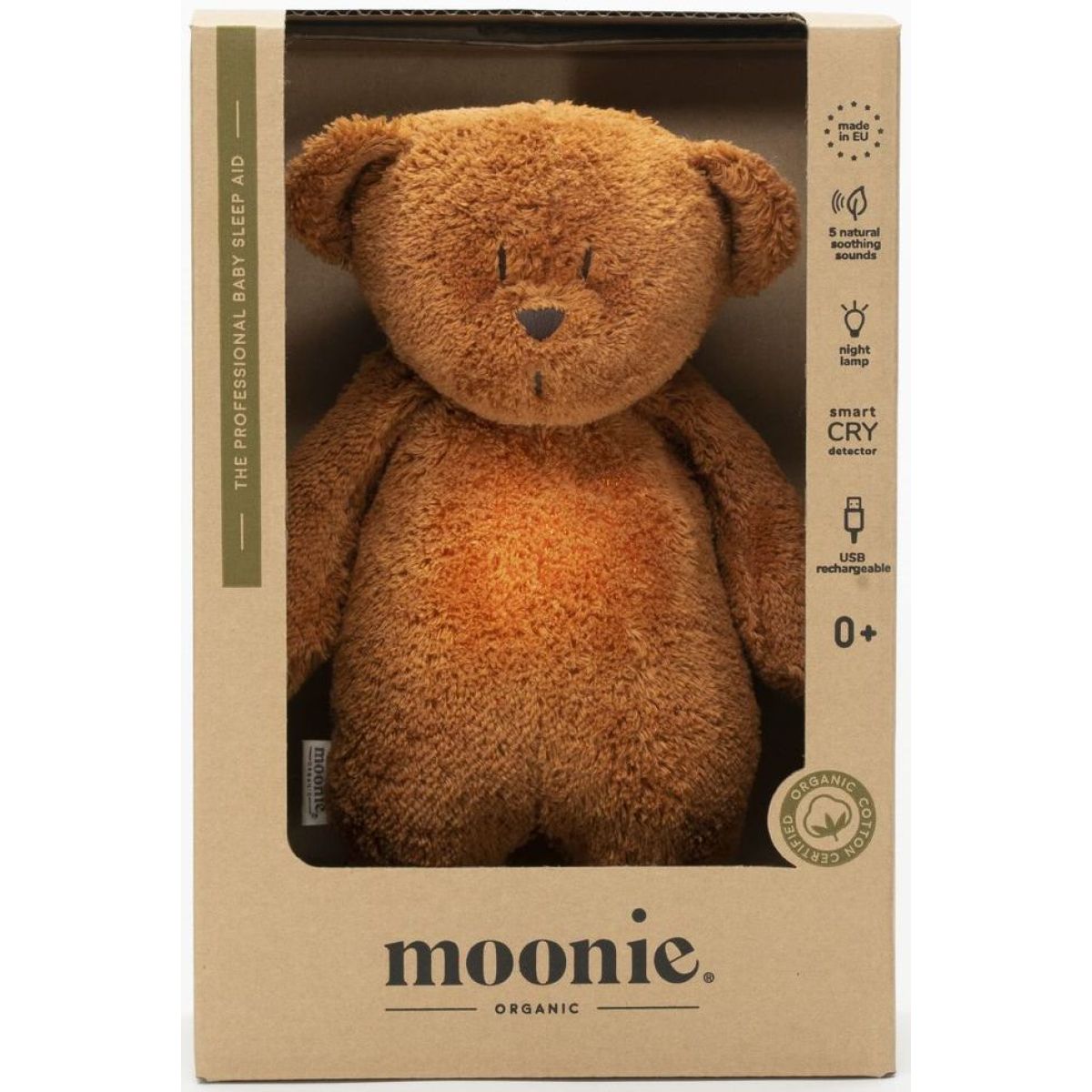 Zažite pokojné noci s Moonie zaspávačikom Medveď 2.0 Organic Caramel, ktorý pomáha bábätkám zaspať vďaka piatim prírodným zvukom a jemnému nočnému svetlu so siedmimi farbami. Hračka má inteligentný senzor plaču, ktorý aktivuje zvuky a svetlo, keď dieťa plače. Nabíjanie je jednoduché cez USB kábel a batéria vydrží až 8 hodín. Po vybratí modulu je možné hračku prať v ruke. Vhodné pre deti od narodenia. Vhodné pre deti od 0 rokov Počet farieb svetla: 7 Počet relaxačných zvukov: 5 Doba prehrávania: 30/60/90 minút Rozmery: 28 x 16 x 10,5 cm Batéria: dobíjacia, USB kábel súčasťou Inteligentný senzor plaču