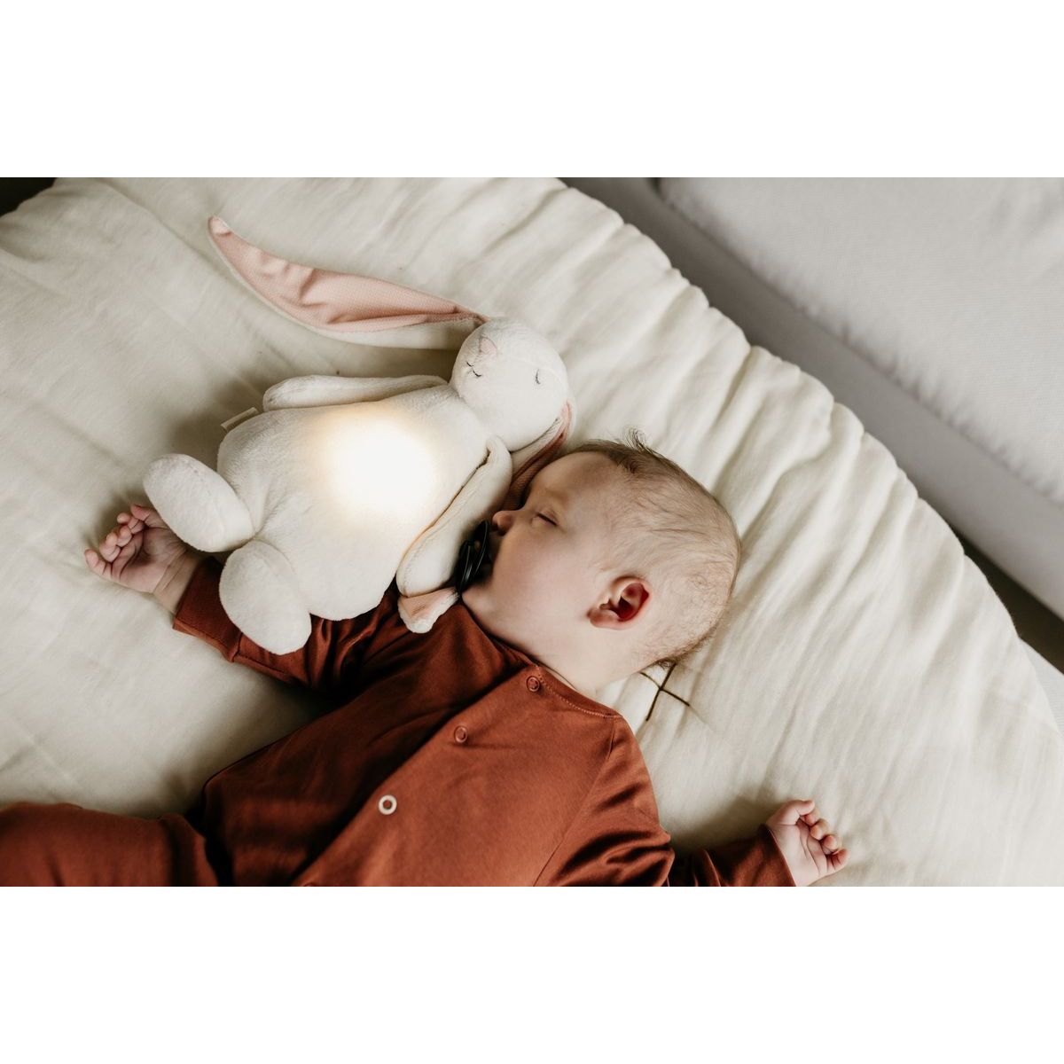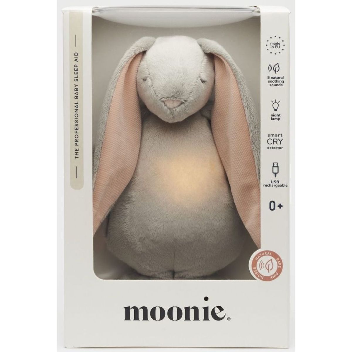 Zažite pokojné noci s Moonie Zaspávačikom Zajačikom 2.0 Cloud, ktorý pomáha bábätkám zaspať vďaka piatim prírodným zvukom a jemnému nočnému svetlu s výberom siedmich farieb. Hračka má tiež inteligentný senzor, ktorý zapne svetlo a zvuky, keď dieťa začne plakať. Môžete si nastaviť časovač na 30, 60 alebo 90 minút. Dobíjacia batéria vydrží až 8 hodín a USB kábel je súčasťou balenia. Rozmery sú 28 x 16 x 10,5 cm. Vhodné pre deti od narodenia. Kľúčové parametre: - Vhodné pre deti od 0 rokov - Rozmery: 28 x 16 x 10,5 cm - Batéria: dobíjacia, súčasť balenia - Počet relaxačných zvukov: 5 - Počet farieb nočného svetla: 7 - Časovač: 30, 60, 90 minút - Inteligentný senzor plaču