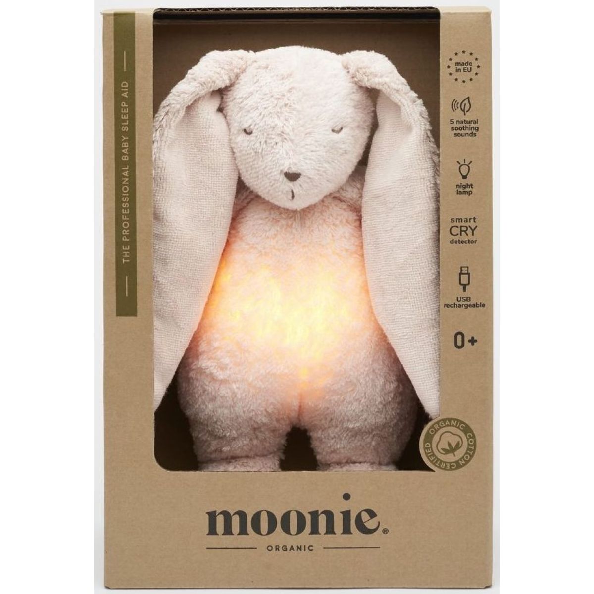 Zažite pokojné noci s Moonie Zajačikom 2.0 Organic Rose, ktorý pomáha bábätku zaspať vďaka piatim prírodným relaxačným zvukom a jemnému nočnému svetlu s výberom siedmich farieb. Inteligentný senzor plaču aktivuje upokojujúce zvuky a svetlo, keď dieťa začne plakať. Dobíjacia batéria s USB káblom zabezpečuje až 8 hodín prevádzky. Zaspávačik je vyrobený z organickej bavlny a dá sa prať po vybratí modulu. Rozmery 28 x 16 x 10,5 cm sú ideálne pre malé ruky. Vhodné pre deti od 0 rokov. Vhodné pre deti od 0 rokov Rozmery: 28 x 16 x 10,5 cm Batérie: dobíjacie s USB káblom Zvuky: 5 prírodných relaxačných Nočné svetlo: 7 farieb Časovač: 30/60/90 minút Senzor plaču: áno Jednoduchá údržba: pranie po vybratí modulu