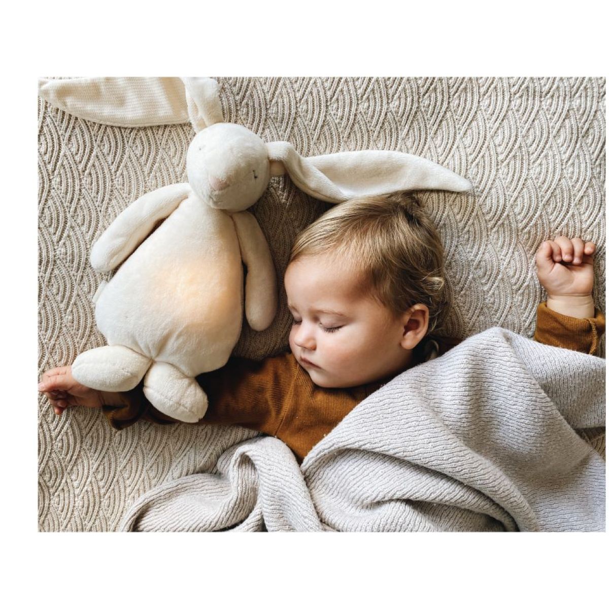 Zažite pokojné noci s Moonie Zajačikom 2.0 Organic Sand. Tento roztomilý zajačik ponúka päť prírodných zvukov a nočné svetlo so siedmimi farbami, ktoré pomáhajú bábätku zaspať. Má tiež senzor, ktorý zapne svetlo a zvuky, keď dieťa začne plakať. Hračka je vyrobená z organickej bavlny a je bezpečná. Dobíja sa cez USB a vydrží až 8 hodín. Rozmery sú 28 x 16 x 10,5 cm. Vhodné pre deti od narodenia.