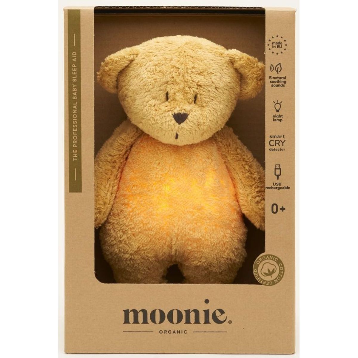 Zažite pokojné noci s Moonie Zaspávačikom Medveďom 2.0 Organic Honey, ktorý pomáha bábätku ľahko zaspať vďaka piatim prírodným zvukom a jemnému nočnému svetlu s výberom siedmich farieb. Hračka je vyrobená z organickej bavlny a plnená recyklovaným materiálom, čo je šetrné k prírode. Nabíja sa pomocou USB kábla a vydrží až 8 hodín prevádzky. Vhodné pre deti od 0 rokov Rozmery: 28 x 16 x 10,5 cm Batérie: vstavaná dobíjacia Zvuky: 5 prírodných, kalimba, 2 uspávanky Farby svetla: 7 Časovač: 30, 60, 90 minút Senzor plaču: áno
