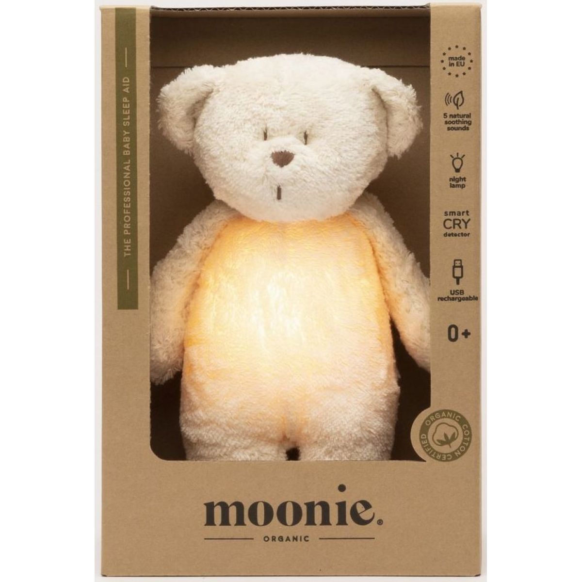 Zažite pokojné noci s Moonie Zaspávačikom Medveďom 2.0 Organic Polar. Tento medvedík s nočným svetlom a relaxačnými zvukmi pomáha bábätkám ľahko zaspať. Má päť prírodných zvukov, sedem farieb svetla a inteligentný senzor plaču. Hračka je vyrobená z organickej bavlny a je umývateľná. Rozmery 28 x 16 x 10,5 cm, vhodné pre deti od narodenia. Ponúka až 8 hodín prevádzky na jedno nabitie a USB kábel je súčasťou balenia.