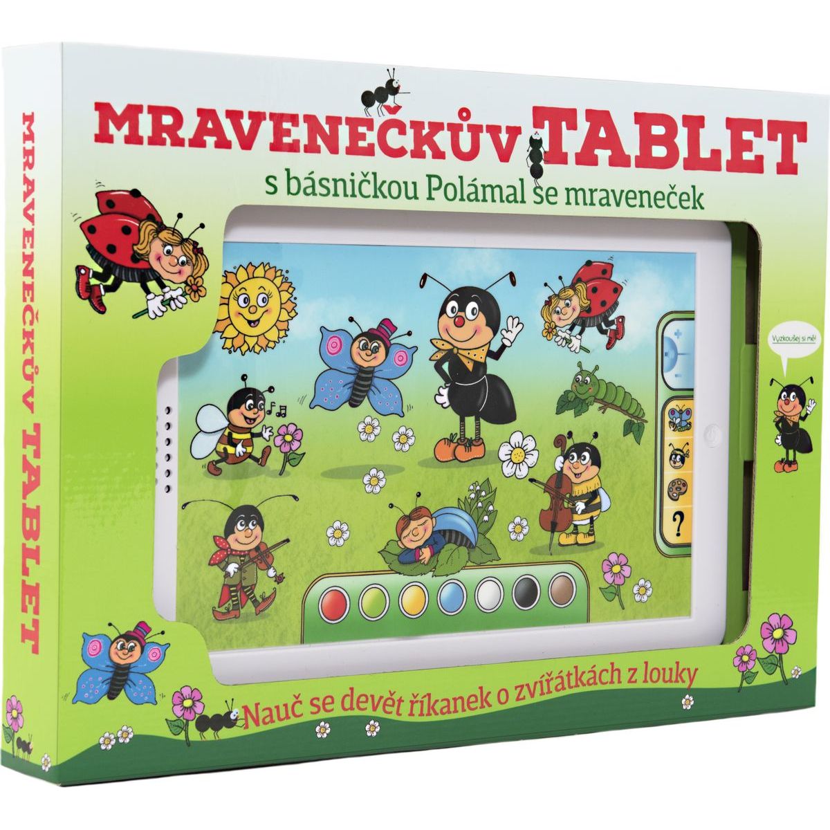 Dotykový tablet je určený najmenším deťom. Tie sa môžu na tabletu zoznámiť s farbami, riekankami o zvieratkách. Tiež si môžu vypočuť básničku Polámal sa mraveneček.