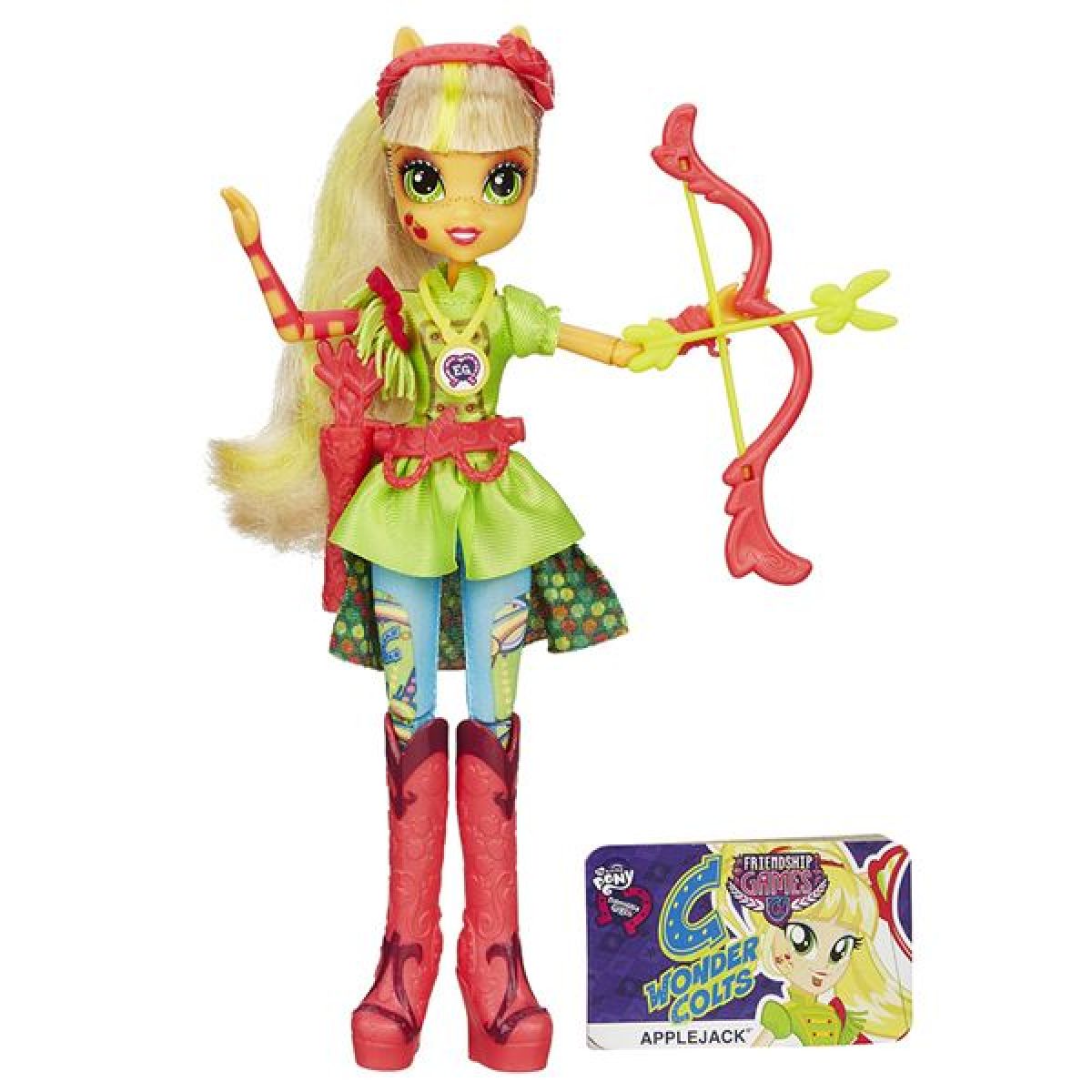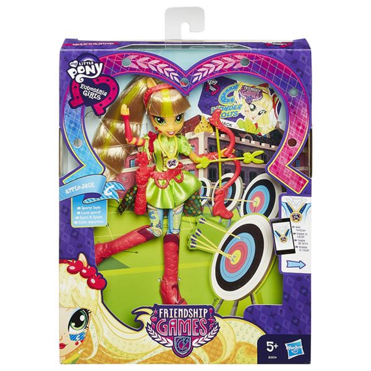 AppleJack je sportovně oblečená a má lukostřelecké vybavení. Navíc řetízek s logem lze naskenovat do aplikace a zažít tak virtuální dobrodružství. Kouzelné zrcadlo proměnilo poníky My little Pony na krásné slečny Equestria Girls, které se těší až se s nimi budou Vaše děti hrát.