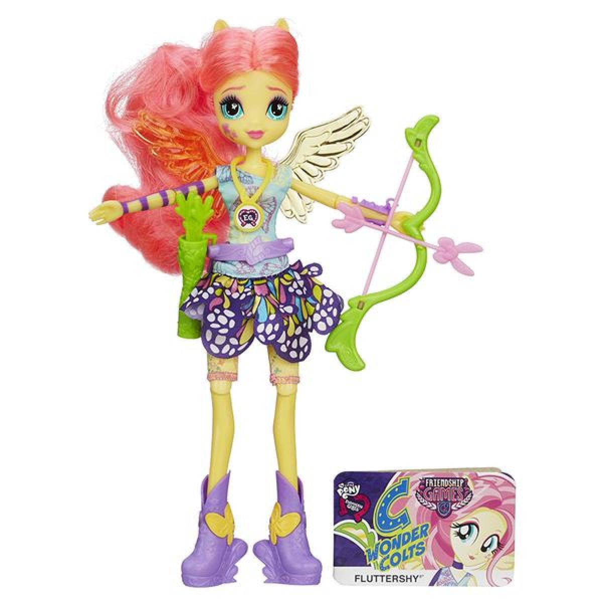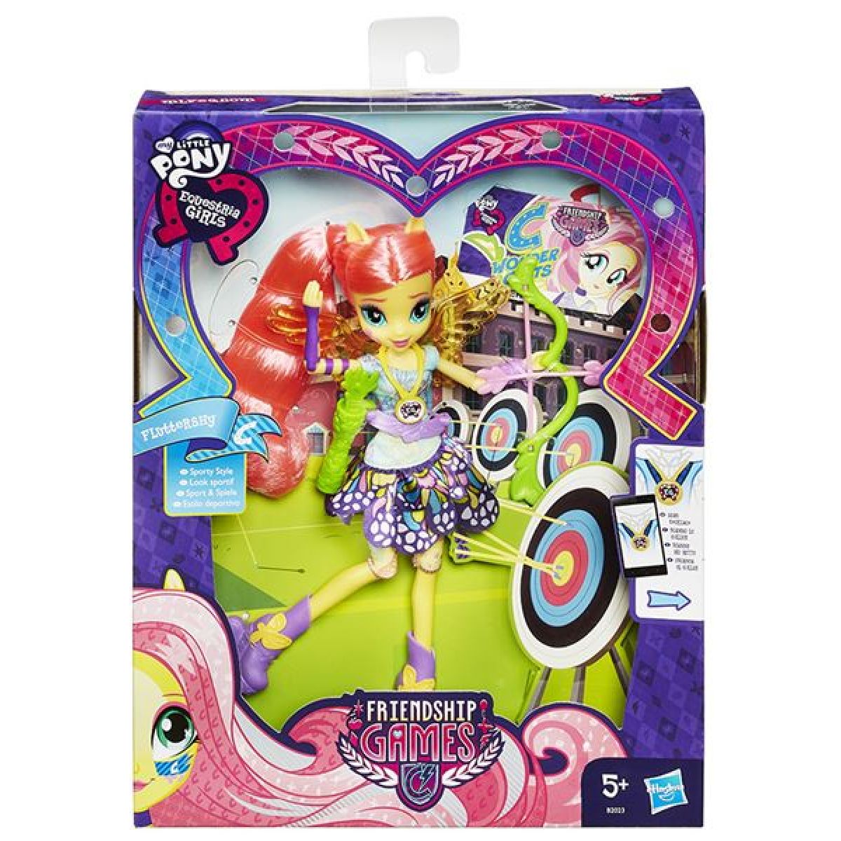 Fluttershy je sportovně oblečená a má lukostřelecké vybavení. Navíc řetízek s logem lze naskenovat do aplikace a zažít tak virtuální dobrodružství. Kouzelné zrcadlo proměnilo poníky My little Pony na krásné slečny Equestria Girls, které se těší až se s nimi budou Vaše děti hrát.