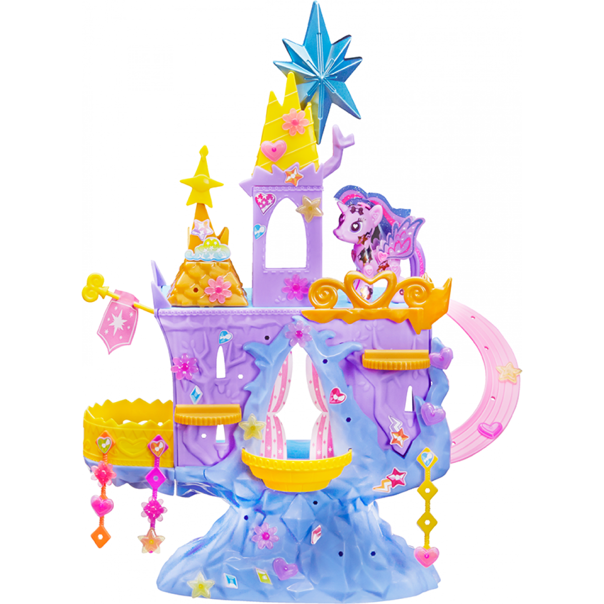 Princezna Twilight Sparkle se svým hradem je připravena pro holčičky od 4 let, které si budou chtít tento hrad s věží a poníka ze dvou kusů postavit. Až ho vyzdobí samolepkami, určitě se ostatní poníci přijdou rádi podívat.
