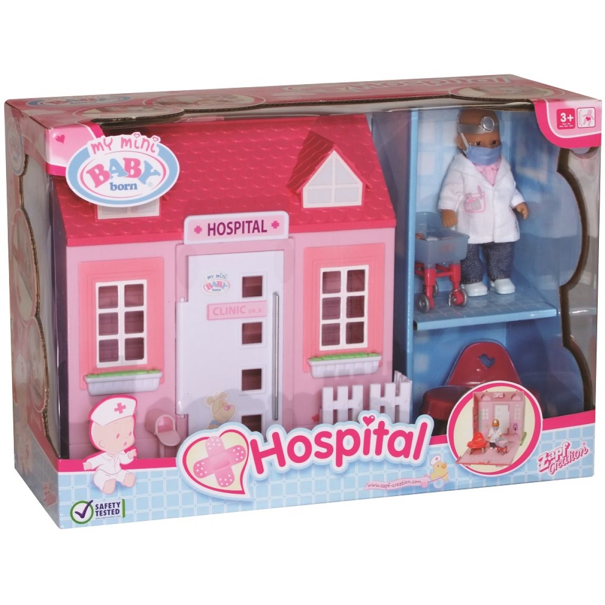 Nemocnice pro panenky Mini Baby Born. Nemocnice je v praktickém boxu a je přenosná. Malá doktorka může tak za svými pacienty kamkoli cestovat a důkladně je ošetřit.