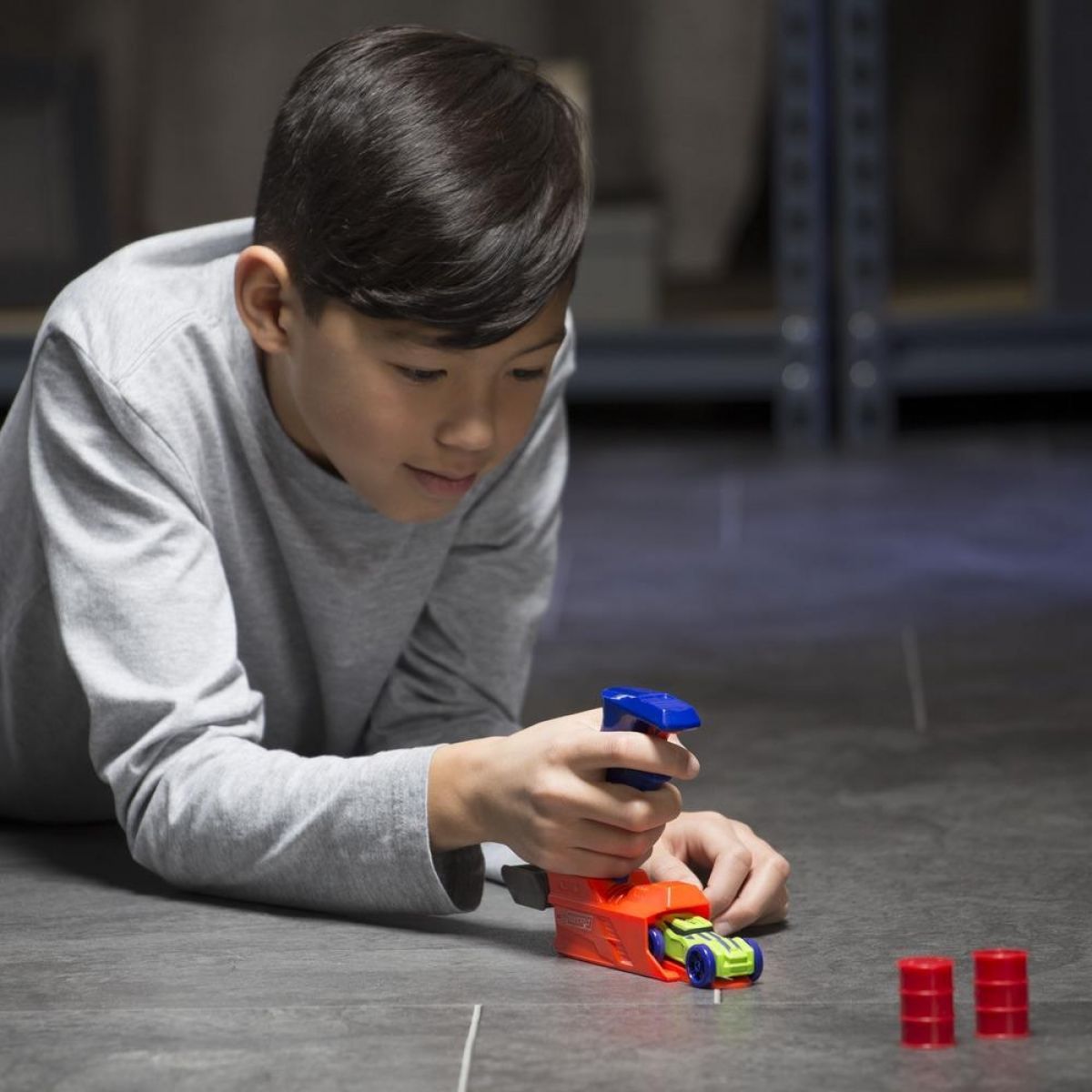 Zelené autíčko si tentokrát mohou kluci vystřelit ze speciální pistole.