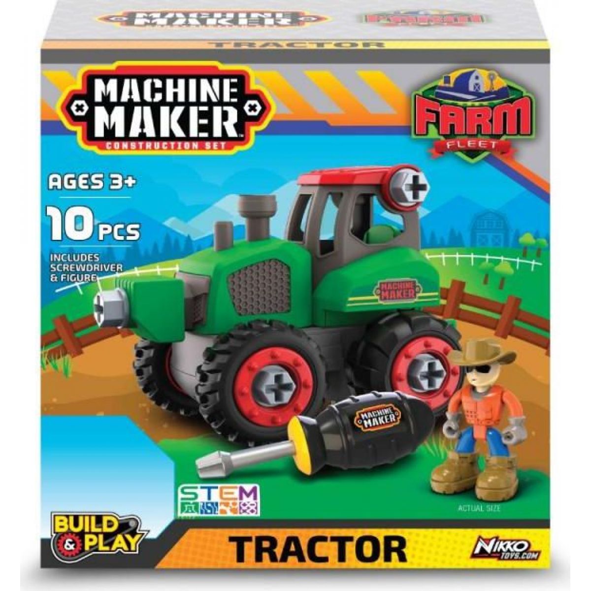 Machine Maker ponúka deťom skrutkovacie farmárske auto, a to vrátane náradia a farmára. Chalani si môžu zoskrutkovať traktor z pripravených dielov, ktoré sa dajú vzájomne kombinovať.