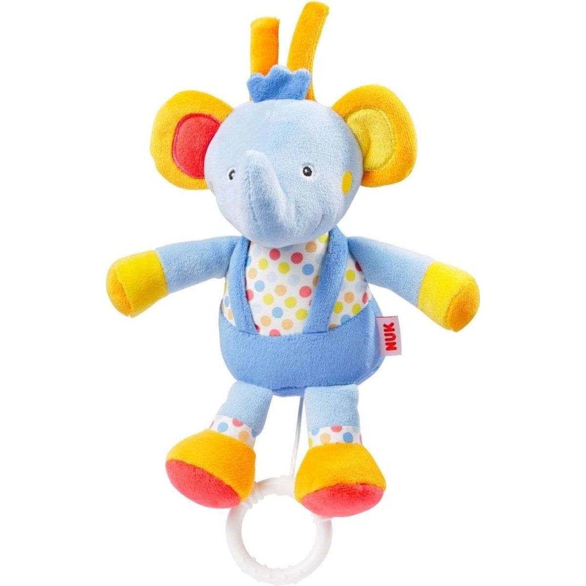 Milé závěsné slůně je jednou z hraček řady Nuk Pool Party, které umí dětem zahrát ukolébavku. Hračka funguje na mechanické natažení. Pozorováním hrající hračky a posloucháním příjemné melodie se miminko uklidní a snadněji se mu usíná.