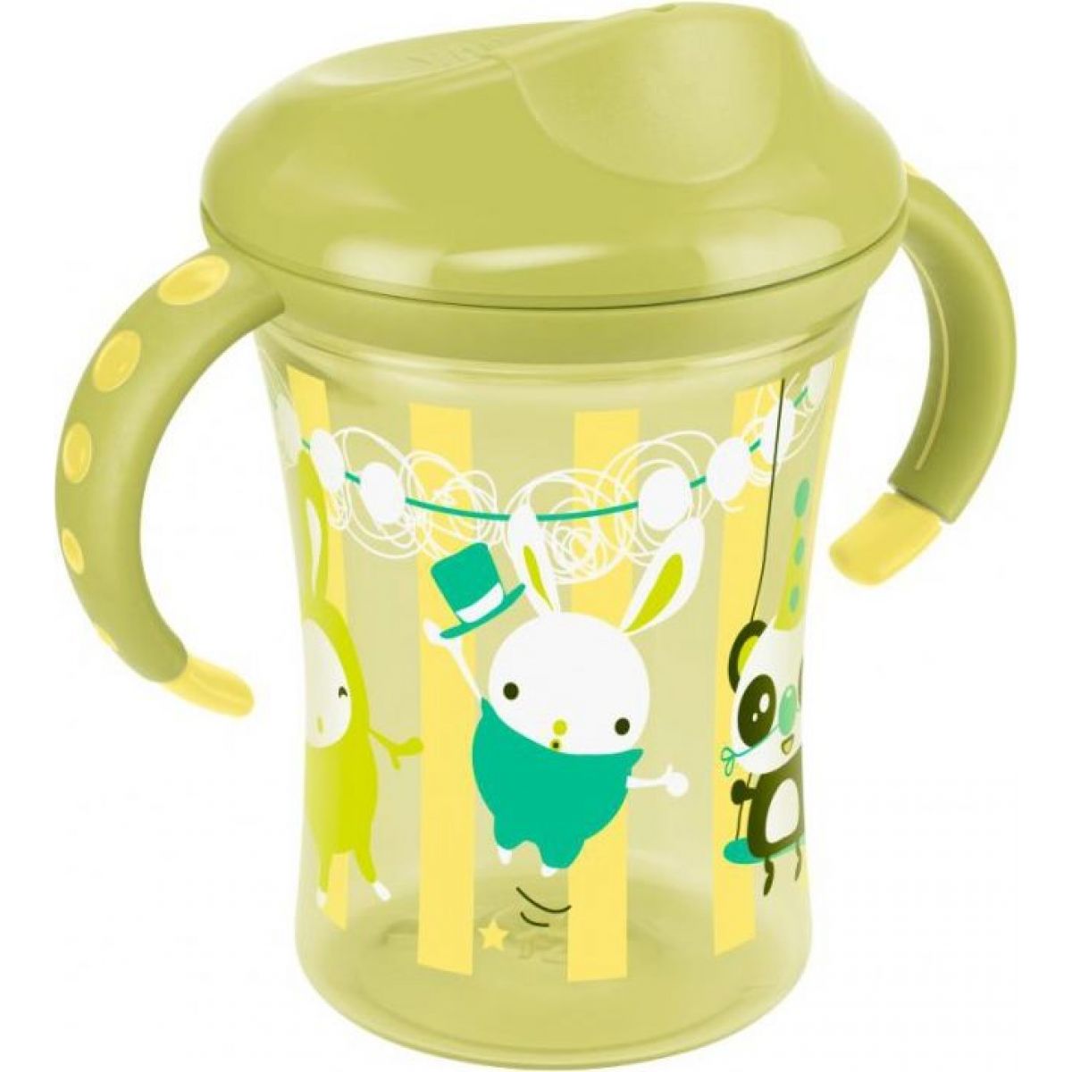 Hrníček Trainer Cup žluto zelené barvy je výborný pro trénink samostatného pití s pítkem nebo bez pítka z okraje hrnku. Je průhledný, snadno se dá kontrolovat kolik tekutiny dítko vypilo, také je kombinovatelný s produkty řady Nuk.
