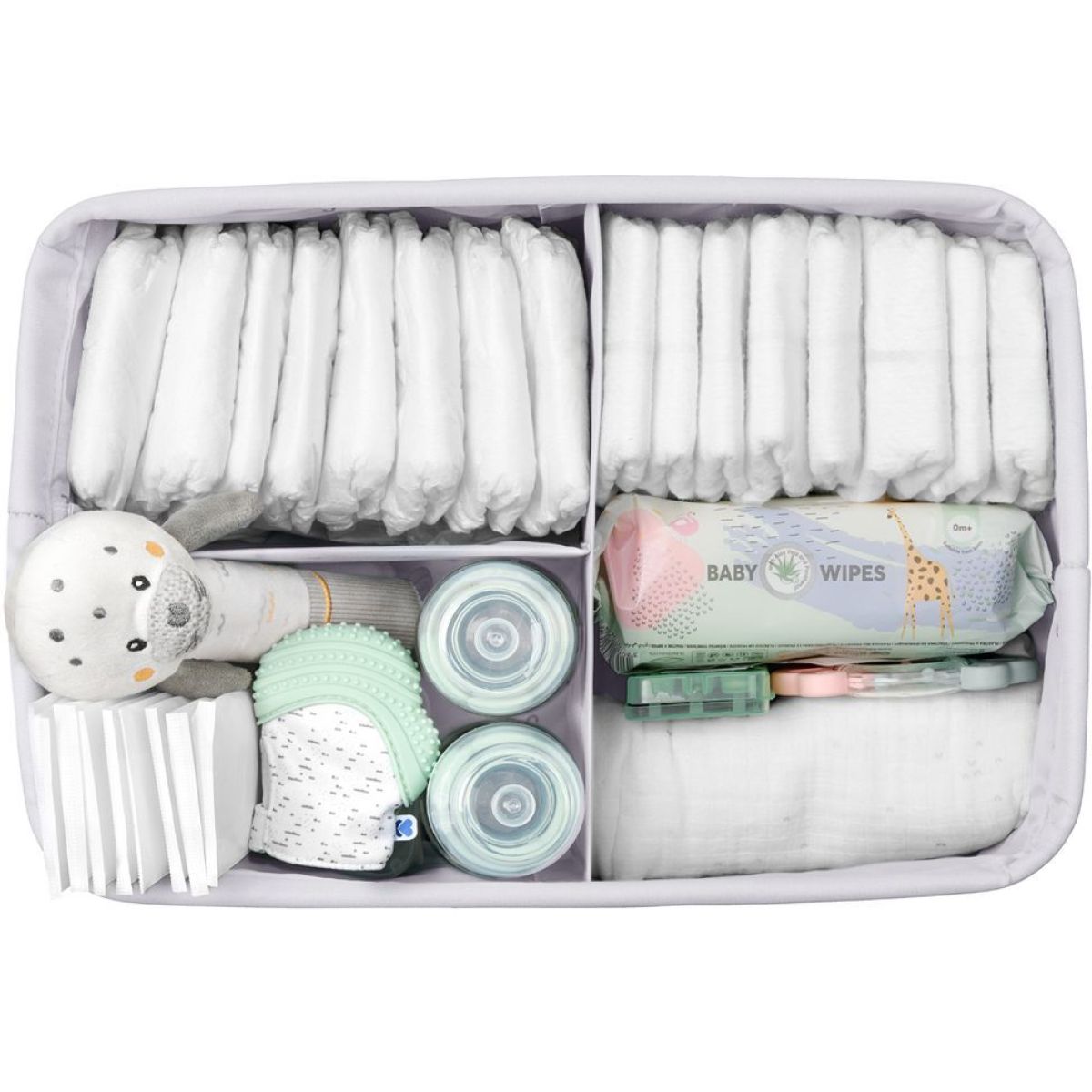 Zažite pohodlie s organizérom na plienky Seally Me, ktorý je vyrobený z mäkkého textilu a pomôže vám udržať prebaľovacie potreby vášho bábätka vždy po ruke. Má držadlá pre ľahké prenášanie a odnímateľnú priehradku pre lepšie usporiadanie. Po zložení zaberie málo miesta. Rozmery sú 42 x 27 x 17 cm a materiál je 100% polyester.