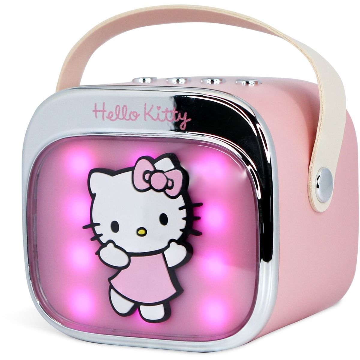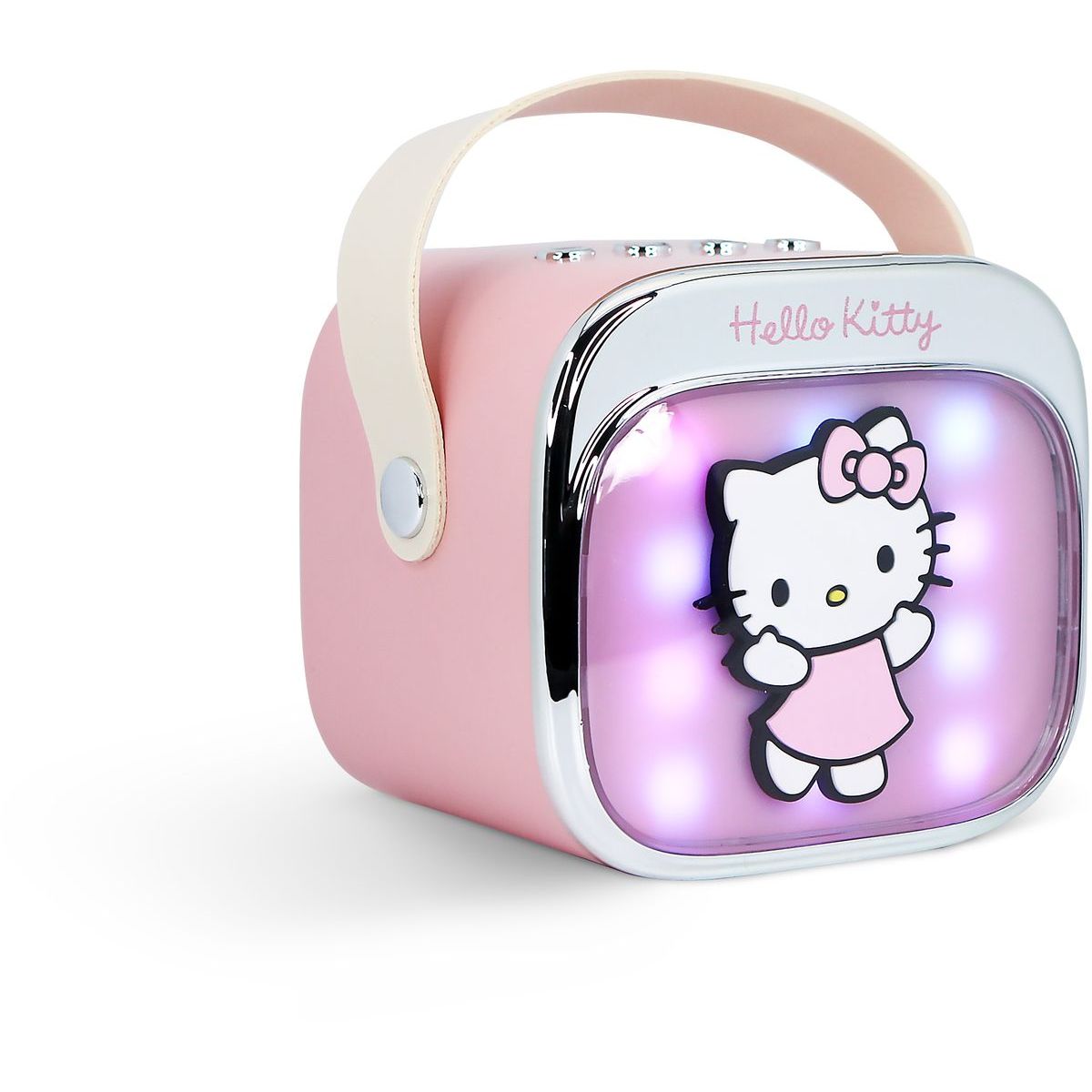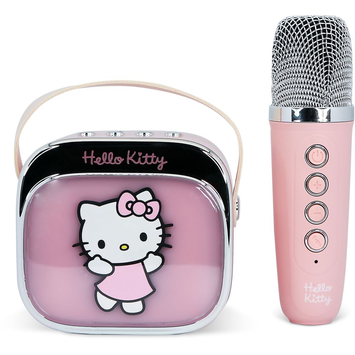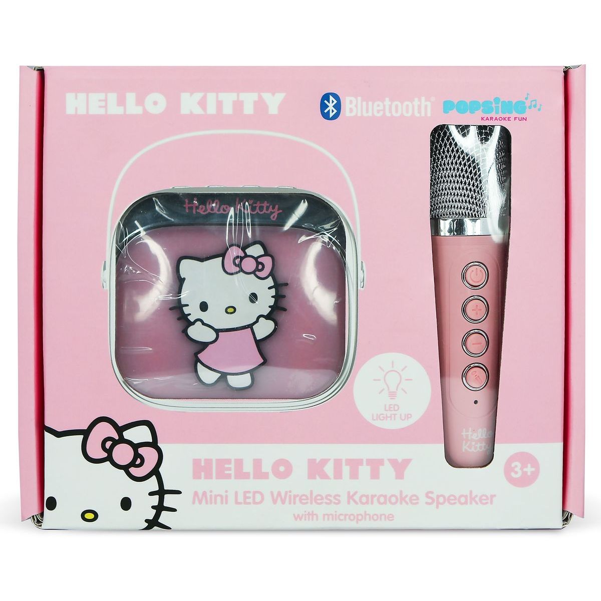Prenosný karaoke reproduktor OTL Technologies Hello Kitty PopSing je ideálny pre deti od troch rokov, ktoré milujú spev! S farebnými LED svetlami a jednoduchým pripojením cez Bluetooth® si môžu deti užívať zábavu kdekoľvek chcú. Výkon reproduktora zabezpečí čistý zvuk a batéria vydrží až štyri hodiny nepretržitej zábavy. Mikrofón s motívom Hello Kitty je ľahký a pohodlný pre malé ruky, čo dodáva každej piesni ešte väčšiu radosť.