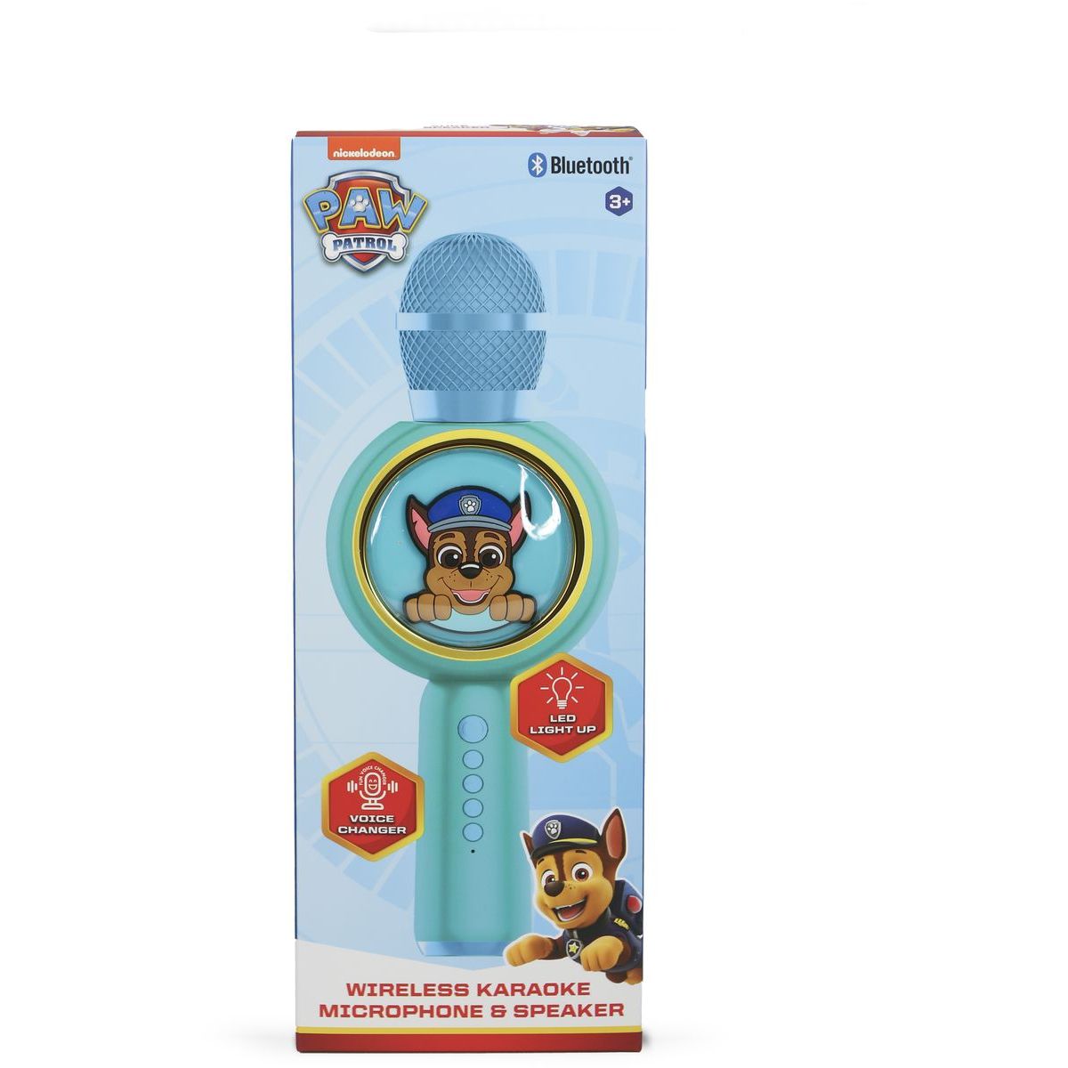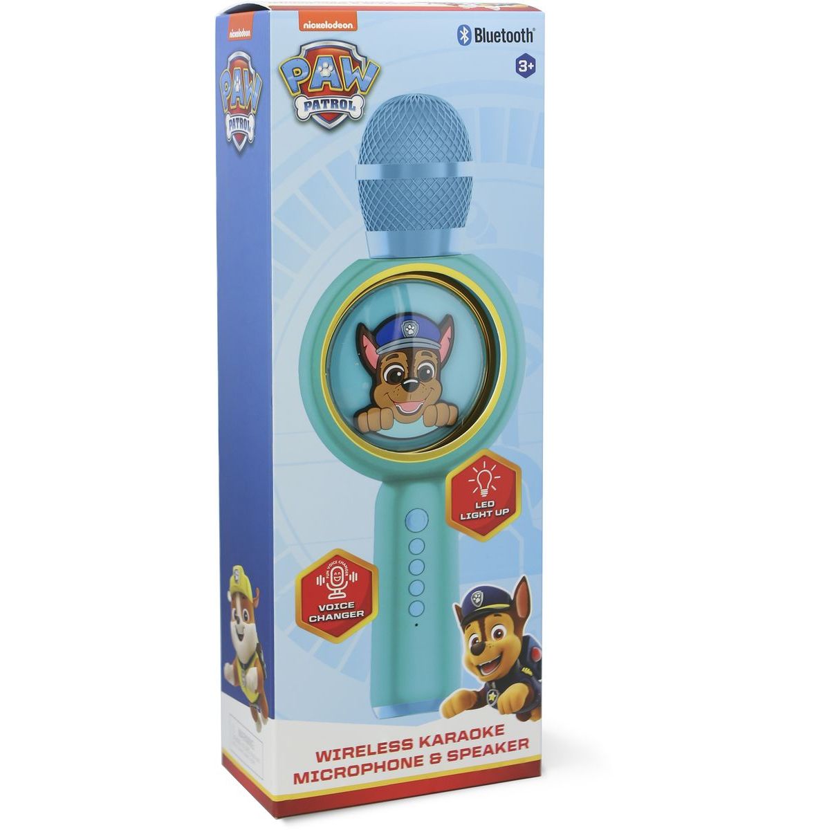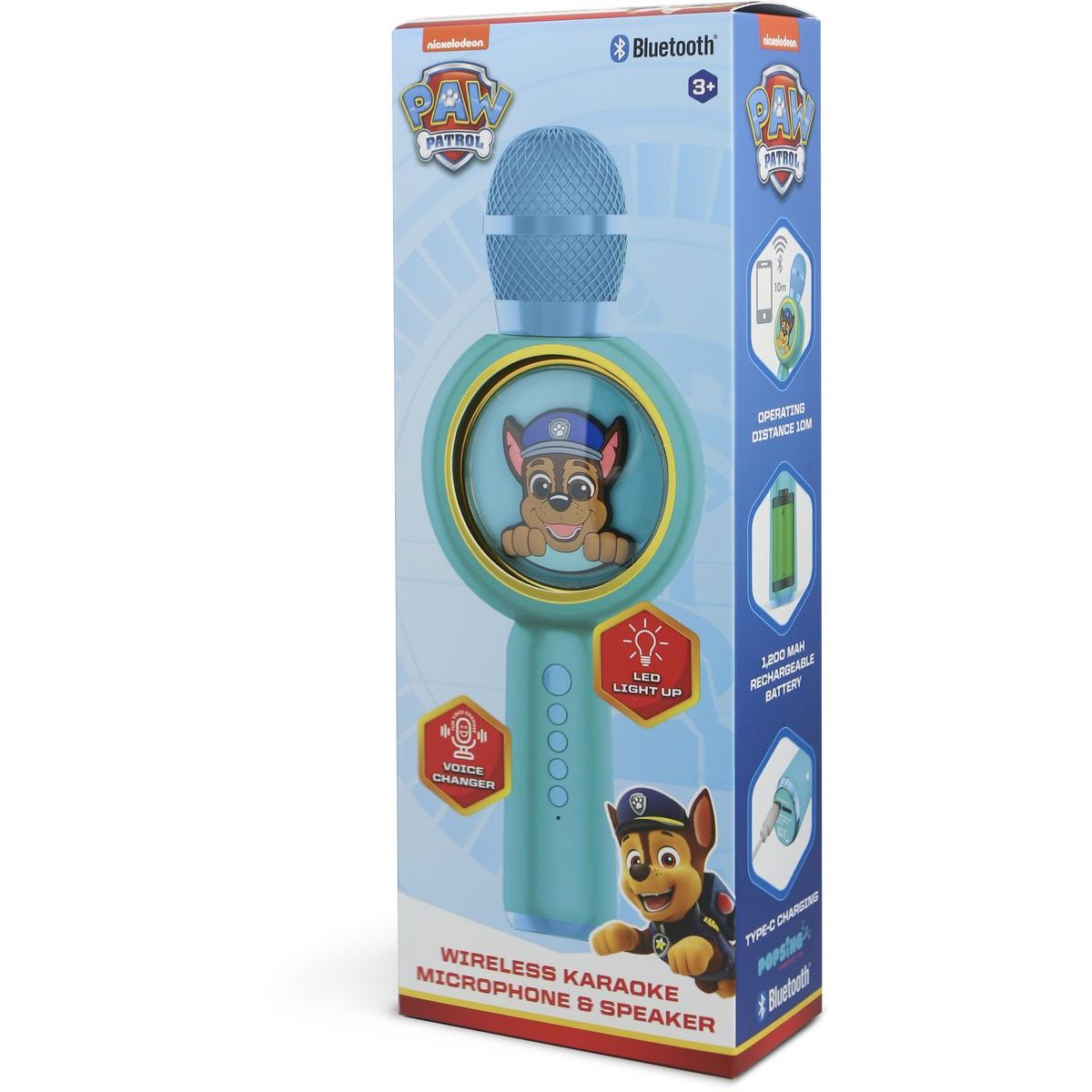 S farebným LED mikrofónom Chase PopSing od PAW Patrol sa karaoke stane skutočnou zábavou pre všetkých malých spevákov! Mikrofón môžete použiť ako reproduktor cez Bluetooth alebo ako bežný mikrofón na spievanie. Jednoduché ovládanie pomocou tlačidiel priamo na mikrofóne uľahčí jeho používanie aj deťom. Vstavaná dobíjacia Li-ion batéria umožňuje až päť hodín nepretržitej hry bez nutnosti nabitia. Mikrofón je kompatibilný so zariadeniami IOS, Android, tabletmi a televízormi – perfektný darček pre deti od troch rokov.