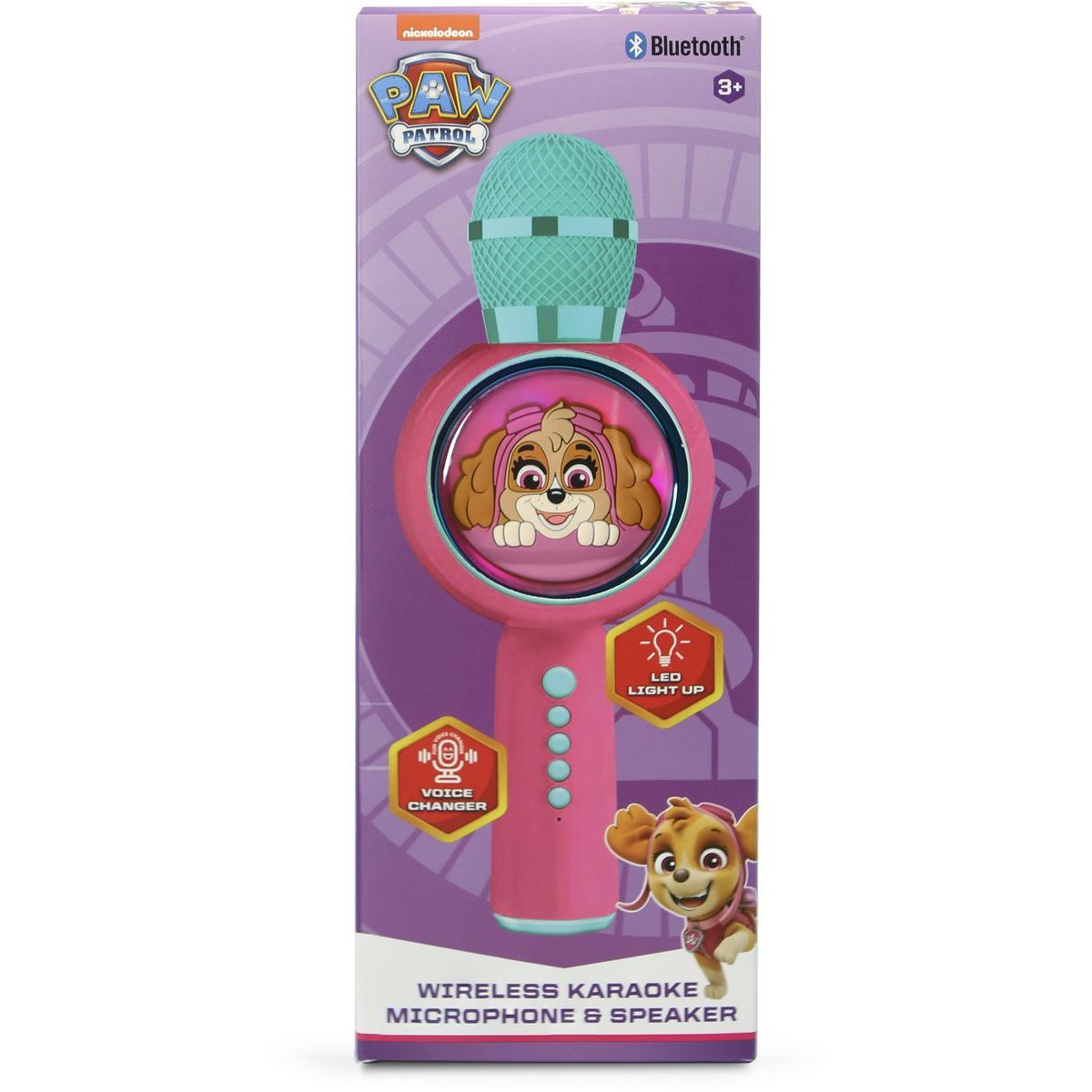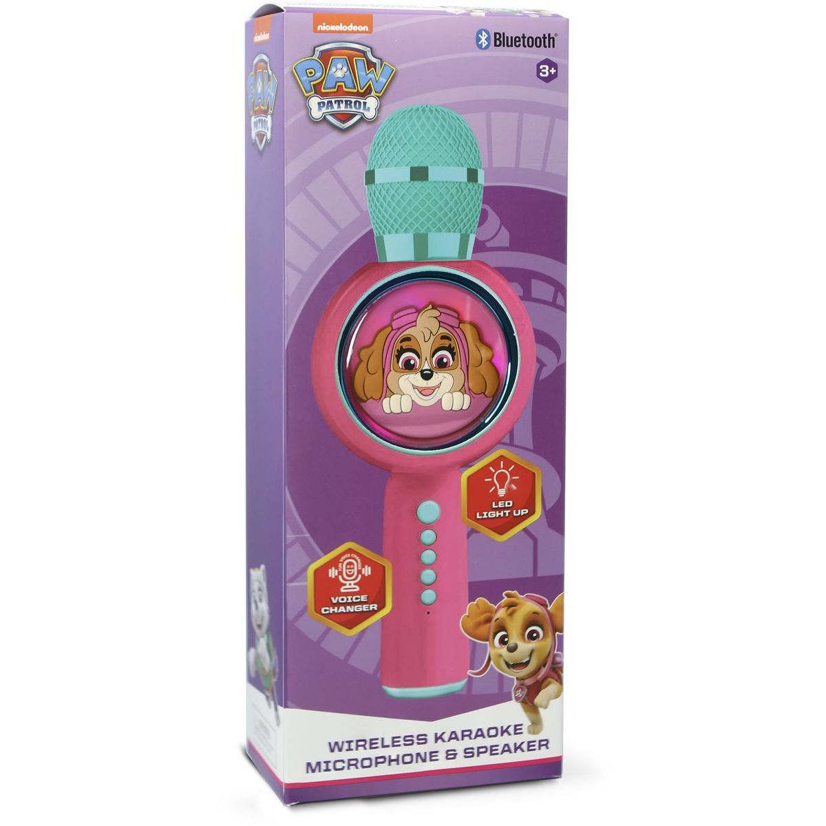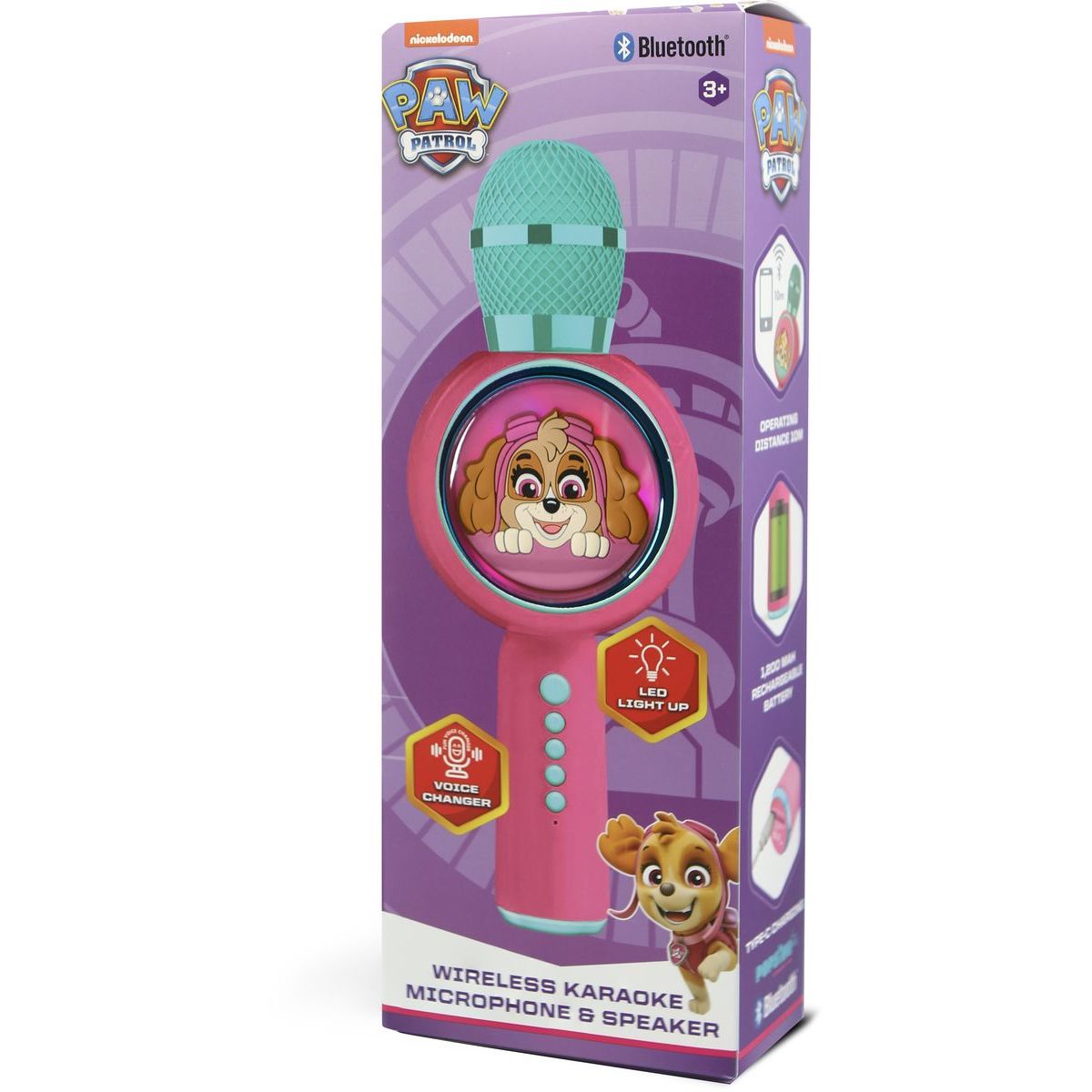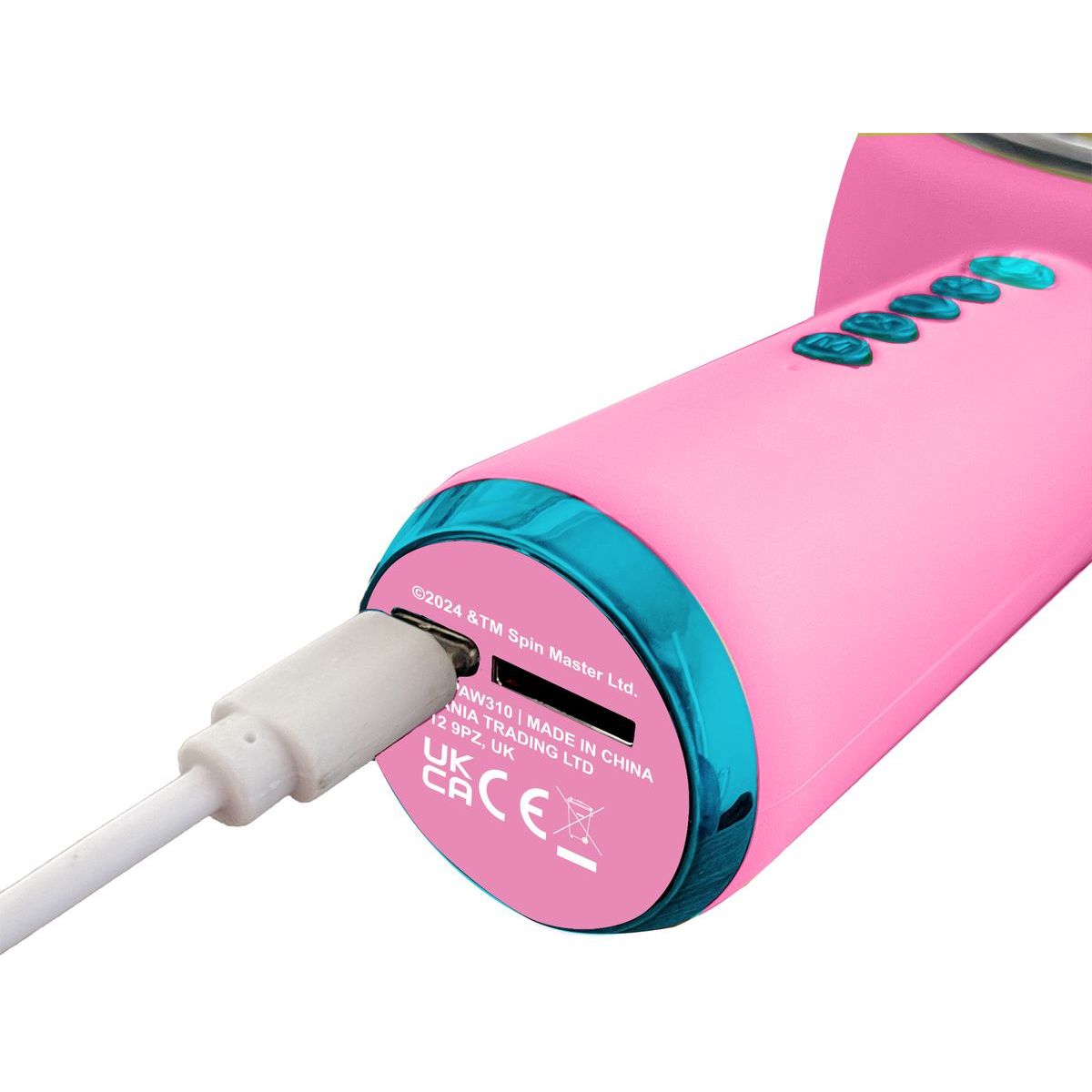 Mikrofón PAW Patrol Skye PopSing LED rozžiari detské hry a piesne všetkým malým spevákom od 3 rokov. Ponúka čistý a hlasný zvuk cez Bluetooth reproduktor a jednoduché ovládanie pomocou funkčných tlačidiel na paneli. Je kompatibilný so zariadeniami iOS, Android, tabletmi aj televízormi, takže spievanie bude vždy zábava doma alebo vonku. Farebný dizajn s motívom Paw Patrol poteší každé dieťa. Vstavaná dobíjateľná batéria Li-ion vydrží až 5 hodín hrania a nabitie cez USB kábel je súčasťou balenia.