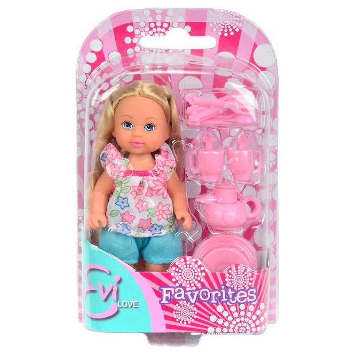 Malá Evička ponúka dievčatkám zahrať si na hostiteľku, kedy môžu spoločne s bábikou pripraviť čajový večierok.