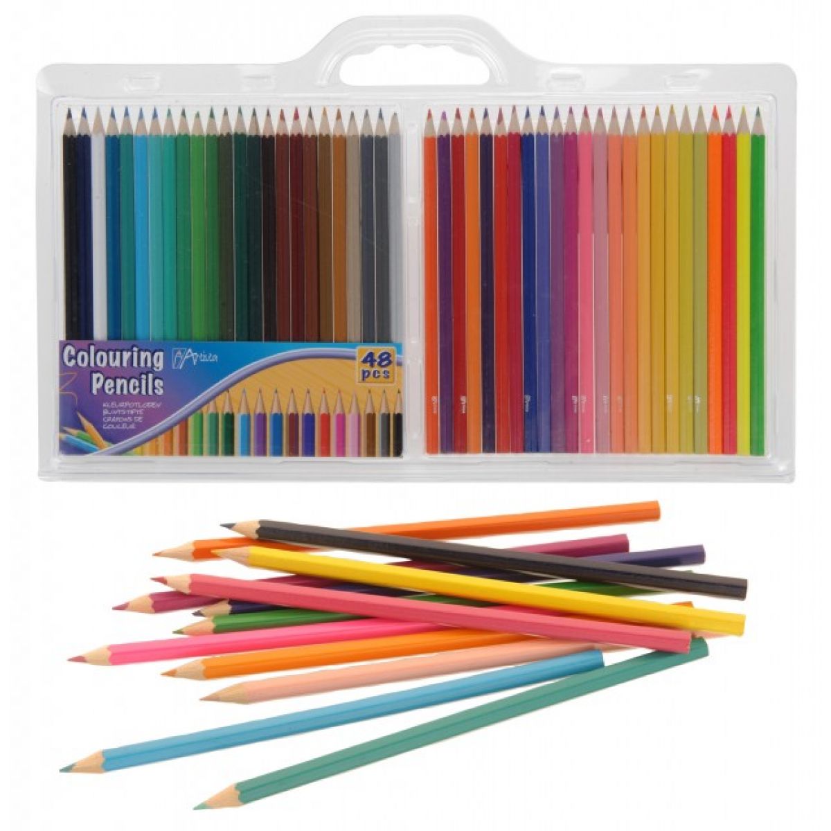 Balení obsahuje 48 barevných pastelek. Délka pastelky 17,5 cm.