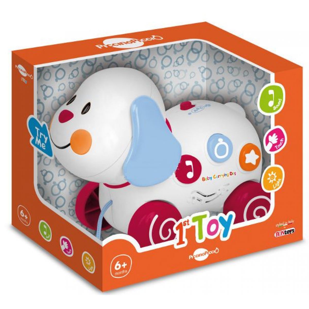 Baby tahací pejsek - PiccinoPiccio BCD5131. Dětský tahací pejsek se svět. efekty.
