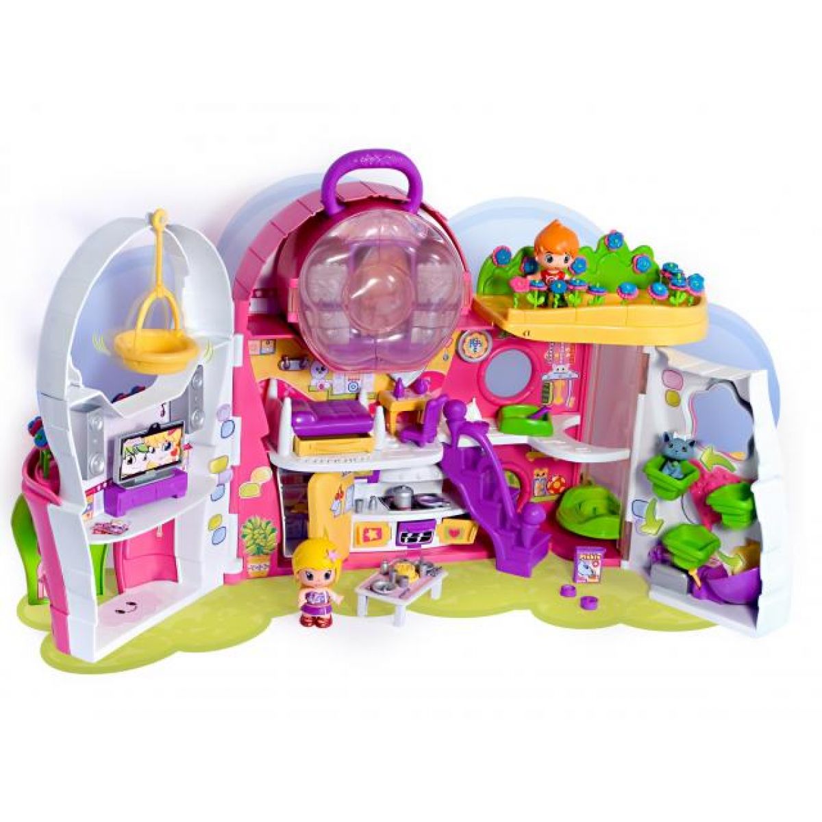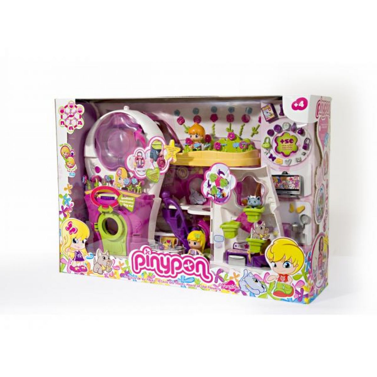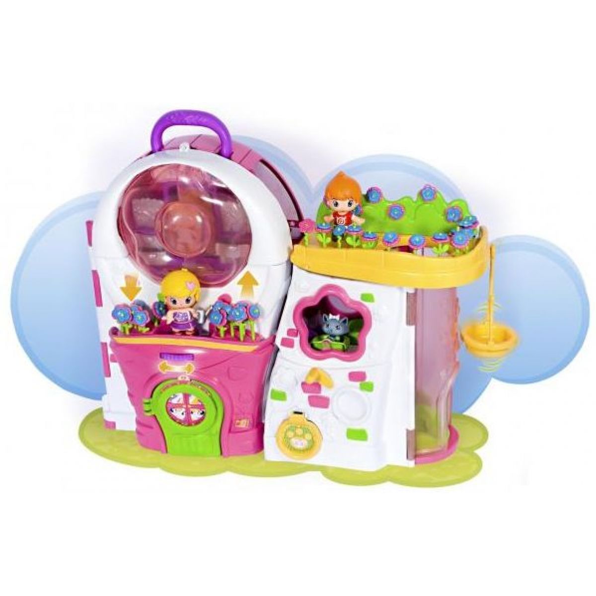 Květinový dům Pinypon - Pin-y-pon 6805. Panenky Pin-y-pon se vždy přizpůsobí tvé náladě a stylu. Nekonečné množství variant a možností. Ve světe Pin-y-pon najdeš také domácí mazlíčky a spoustu kreativních hracích setů. Květinový dům můžeš rozložit nebo si ho vzít s sebou na cesty složený s praktickým držátkem. Z horní části domečku můžeš mít kabelku, do které můžeš schovat své Pin-y-pon panenky a mazlíčky. Nezapomeň povozit své mazlíčky na kolotoči, podívej se na tančící květiny a svez Pin-y-pon ve výtahu a pohoupej své zvířátko na zvířecí houpačce. Sada obsahuje 2 figurky Pin-y-pon a jedno zvířátko, spoustu doplňků a dekorační samolepky.