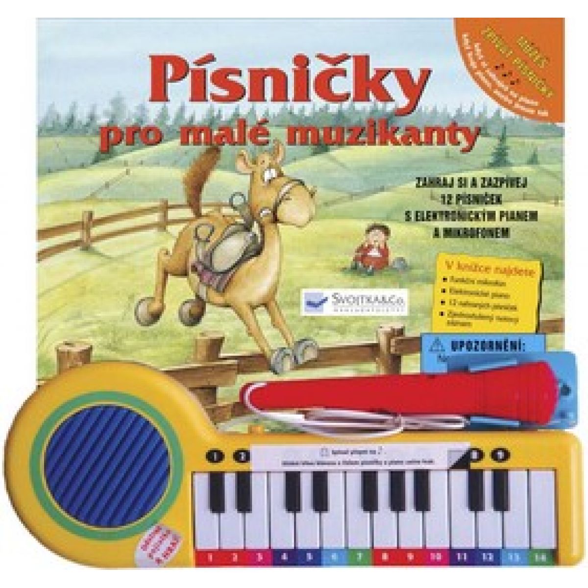 Dětská kniha s elektronickým klavírkem a mikrofonem. Zahrát a zazpívat si můžete 12 písniček (Ovčáci, čtveráci, Vyletěla holubička ze skály, Měla babka, Kudy, kudy, kudy cestička, Až já pojedu přes ten les, Travička zelená, Kalamajka, mik mik mik, Když jsem husy pásala, Ej, padá padá rosička, Pod našim okýnkem, Komáři se ženili a Plavala husička po Dunaji).