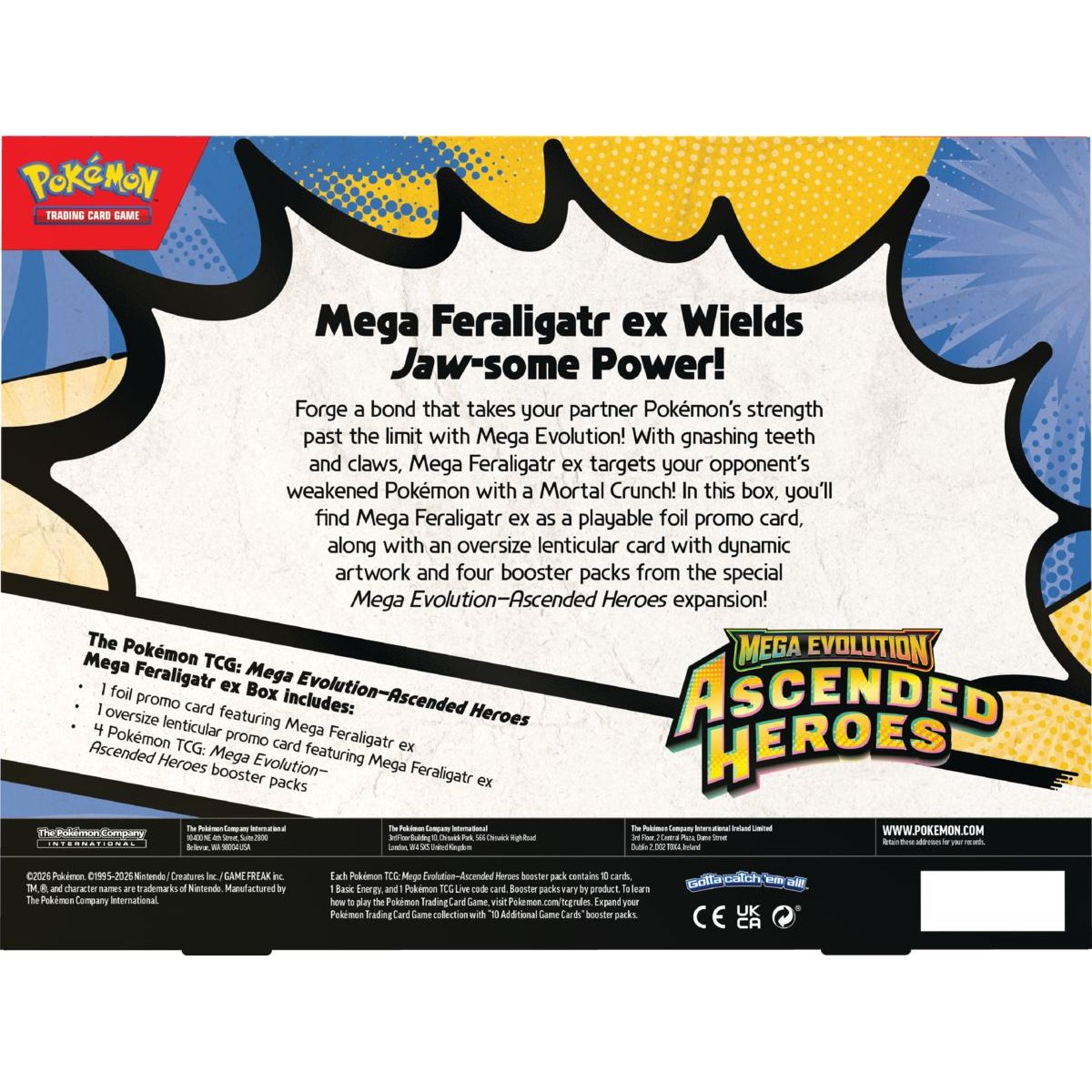 Pokémon TCG: ME02.5 Ascended Heroes - ex Box poteší malých aj väčších trénerov! Vyberte si jednu z troch variant – Mega Feraligatr ex, Mega Emboard ex alebo Mega Meganium ex – a začnite zbierať tie najvzácnejšie karty. Tento špeciálny box je ideálnym darčekom pre deti od 6 rokov, ktoré milujú dobrodružstvo s Pokémonmi a chcú sa stať najlepšími trénermi v hre Pokémon TCG.