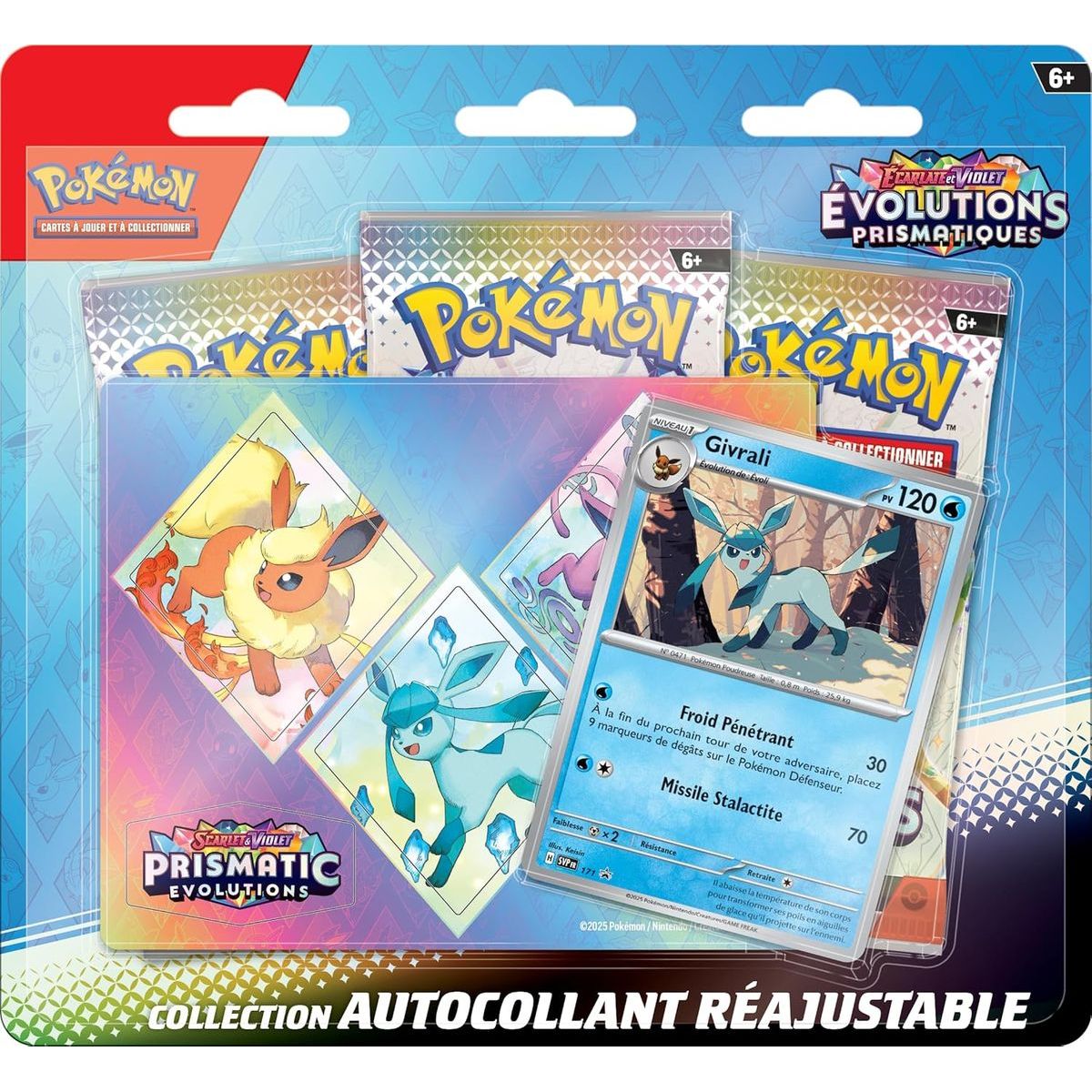 Pokémon Prismatic Evolutions Tech Sticker Collection je balení 3 boosterů, jedné promo karty (Glaceon, Leafeon, Sylveon) a samolepky ve tvaru známých evolucí. Toto balení udělá radost každému sběrateli.