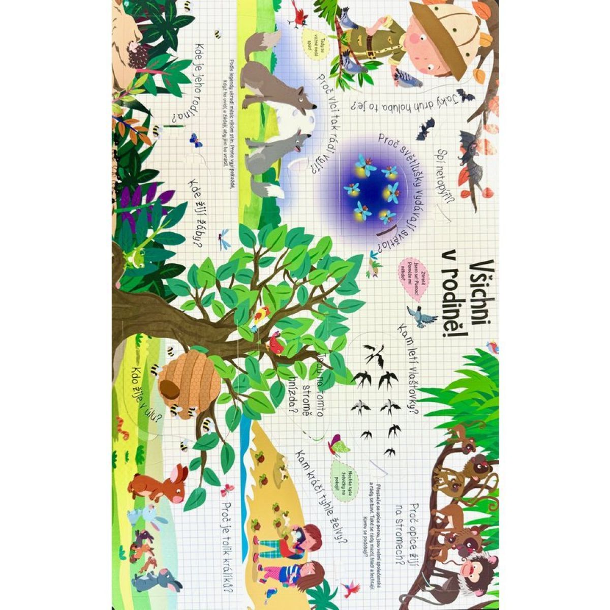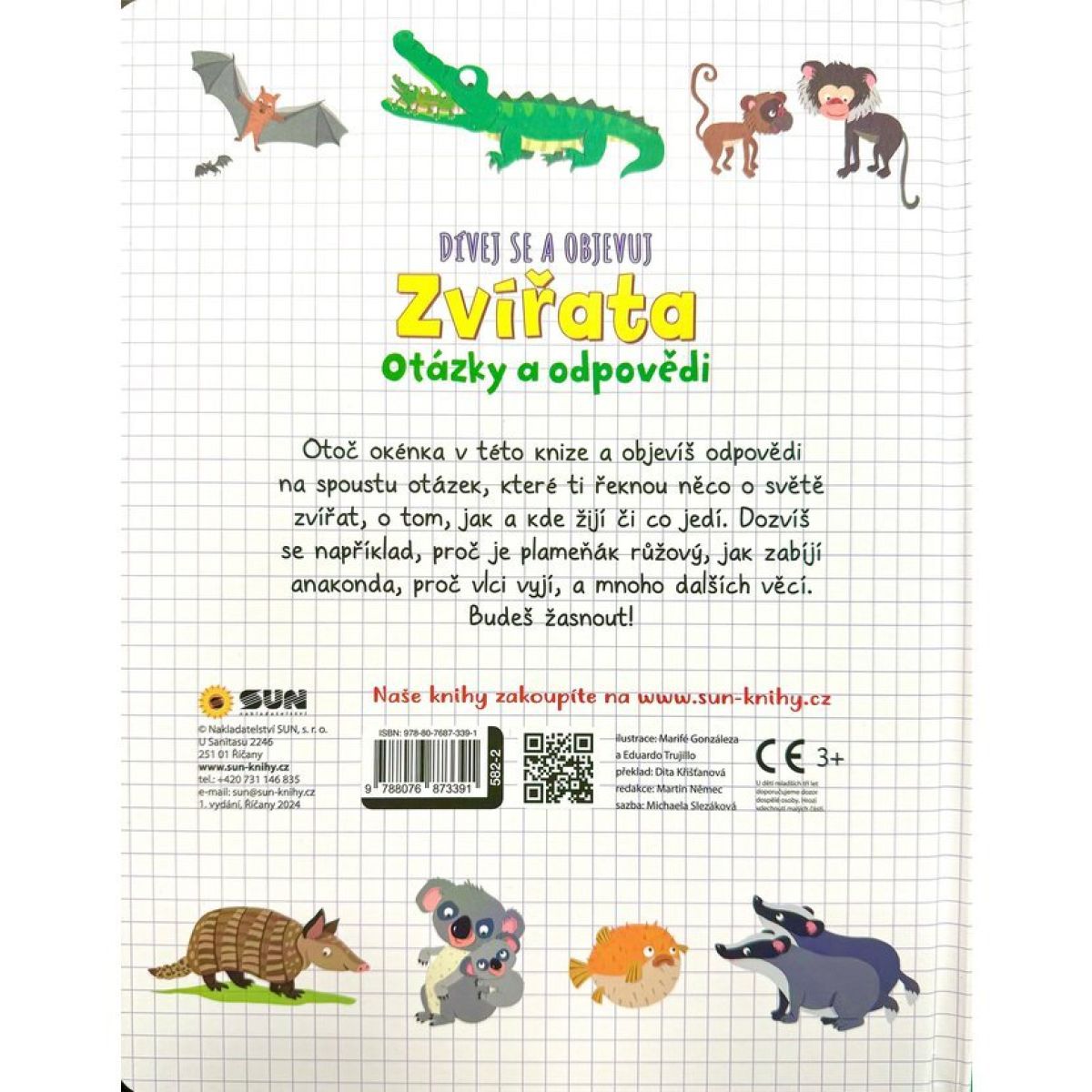 "Pozri sa a objavuj – ZVIERATÁ – okienková kniha" otvára deťom svet fascinujúcich zvierat a ich zvykov. Viac než 60 okienok odhaľuje, kde žijú rôzne druhy zvierat, čo jedia, prečo pštros strká hlavu do piesku, koľko zubov má žralok a prečo surikaty chodia všade spolu. Interaktívny formát knihy podporuje zvedavosť, kreativitu a lásku k prírode hravou a pútavou formou, ktorá deti baví a vzdeláva zároveň.