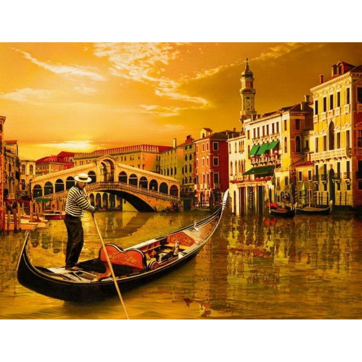 Puzzle s nádherným motivem gondoliéra v italských Benátkách. Obrázek lze po složení slepit, může sloužit následně jako vkusná dekorace Vašeho bytu.