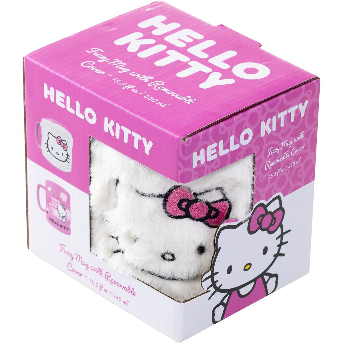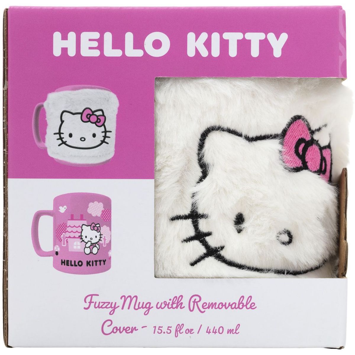 Tento hrnček o objeme 440 ml prináša obľúbenú postavičku Hello Kitty priamo na tvoj stôl, zatiaľ čo plyšový návlek dodáva hrnčeku rozkošný vzhľad a pohodlné držanie.