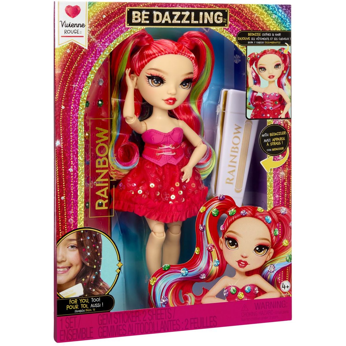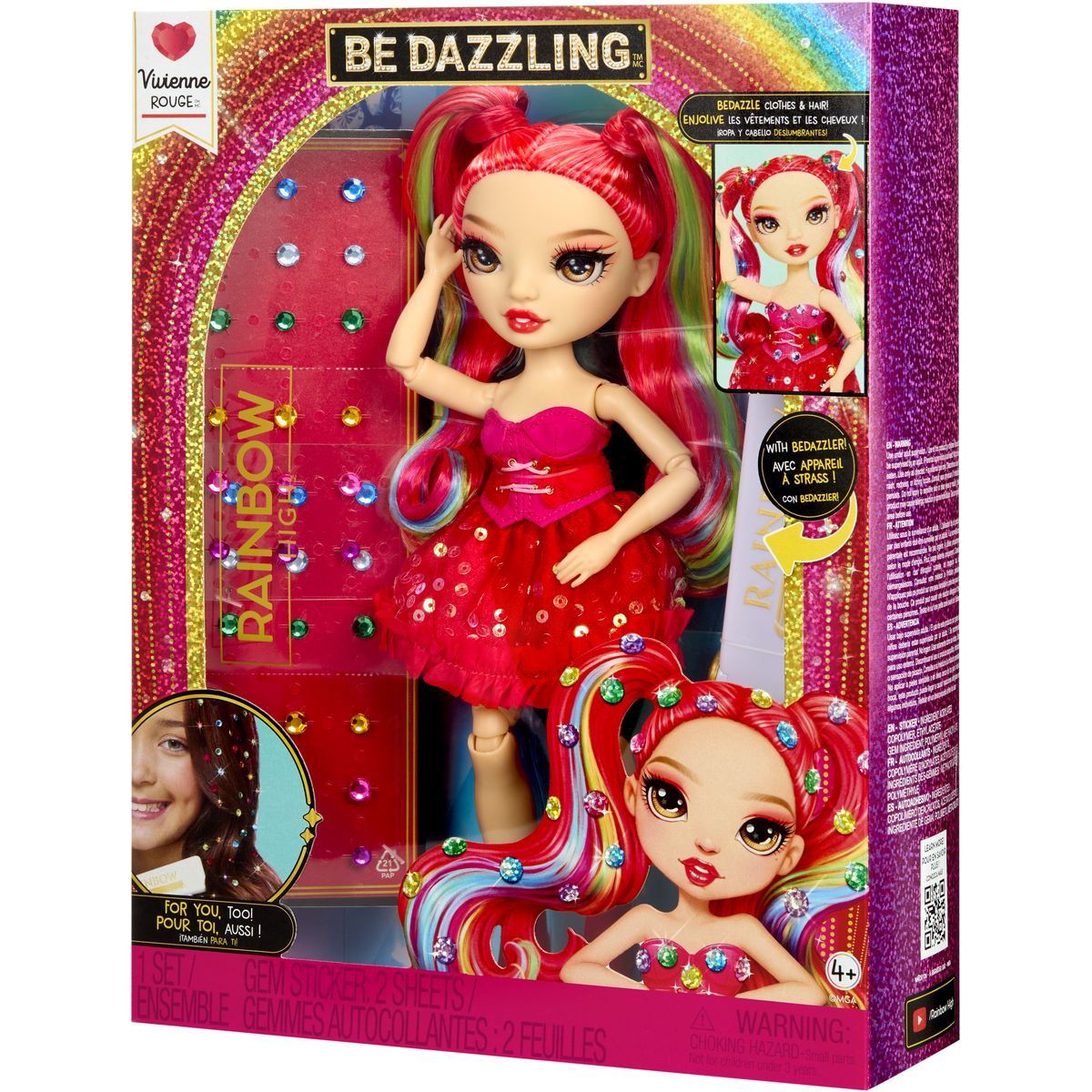 Zoznám sa s bábikou Vivienne Rouge zo série Rainbow High Be Dazzling Fashion, ktorá prináša do sveta farieb a módy nový rozmer zábavy. Bábika má pohyblivé kĺby, dlhé česateľné vlasy a štýlový outfit doplnený dúhovými trblietkami, ktoré môžeš ľahko aplikovať aj na svoje oblečenie alebo vlasy pomocou krimpovacieho nástroja. Táto bábika povzbudzuje kreativitu a sebavyjadrenie u všetkých malých módnych nadšencov.