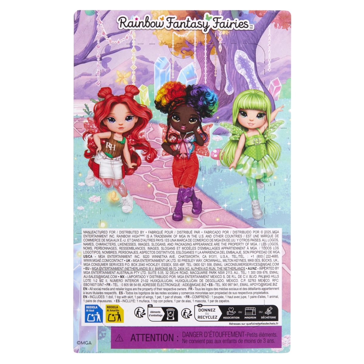 Zoznám sa s malou sestričkou vílou Emerald zo sveta Rainbow High! Táto bábika má dlhé zelené vlasy, priehľadné nohy a svojho maznáčika, ktorý nosí jej krídla. V sade nájdeš aj pár krídel a topánky na každé kúzelné dobrodružstvo. Hranie so sestričkou vílou podporuje tvorivosť detí a prináša veľa radosti pri objavovaní nových príbehov. Vhodné pre deti od 4 rokov Šírka balenia (cm): 12,065 Výška balenia (cm): 19,05 Dĺžka balenia (cm): 5,715 Hmotnosť balenia (kg): 0,2