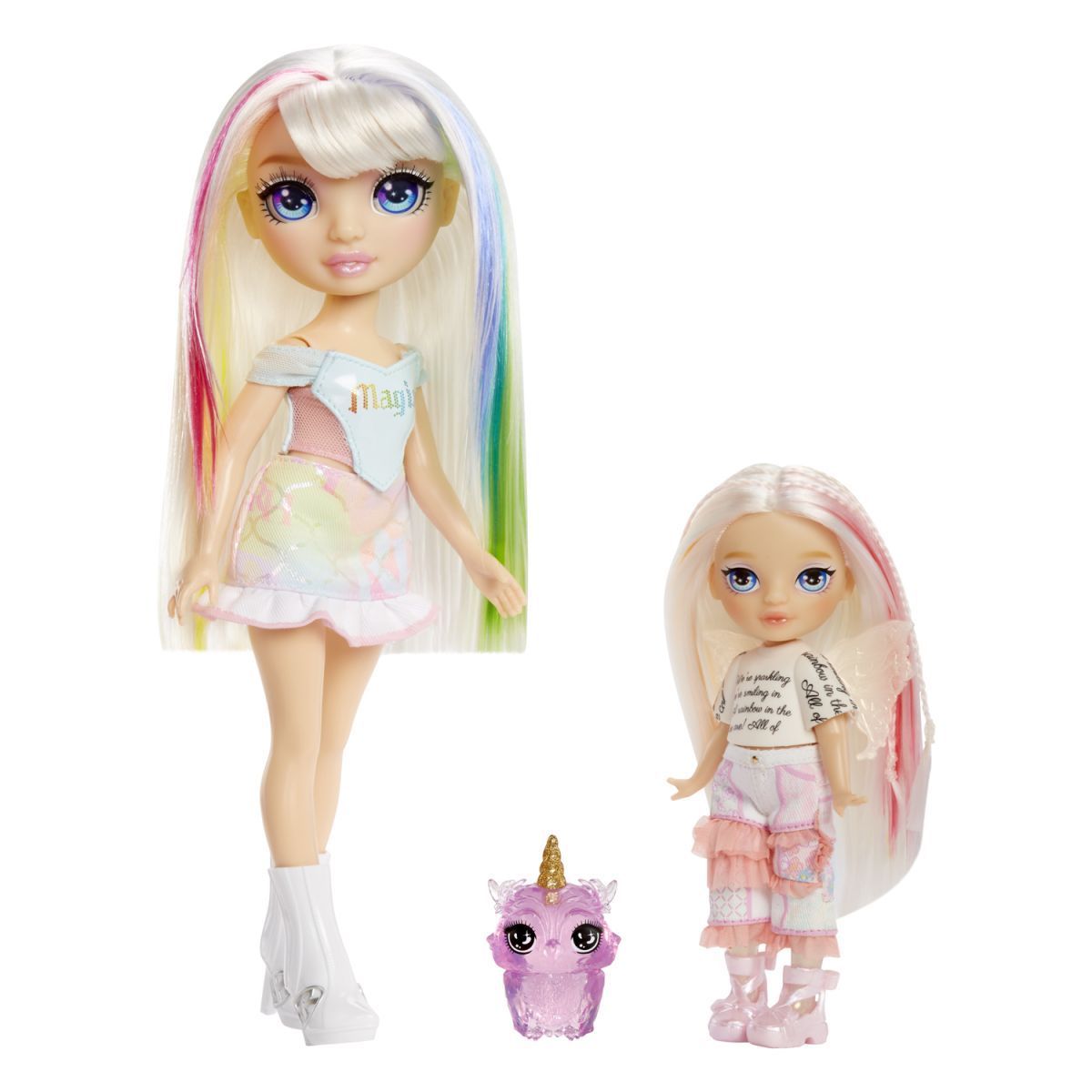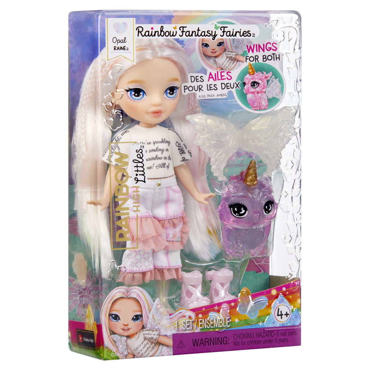 Zoznámte sa s malou sesterničkou vílou Opal zo sveta Rainbow High! Táto bábika má dlhé česateľné vlasy, priehľadné nohy v farbe vlasov a kúzelné krídla, ktoré môže nosiť aj jej maznáčik. V balení nájdete komplet outfit, pár topánok a samozrejme maznáčika na spoločné dobrodružstvá plné fantázie. Perfektná hračka pre deti od 4 rokov milujúce svet rozprávok. Vhodné pre deti od 4 rokov Rozmery balenia: 12.065 x 19.05 x 5.715 cm