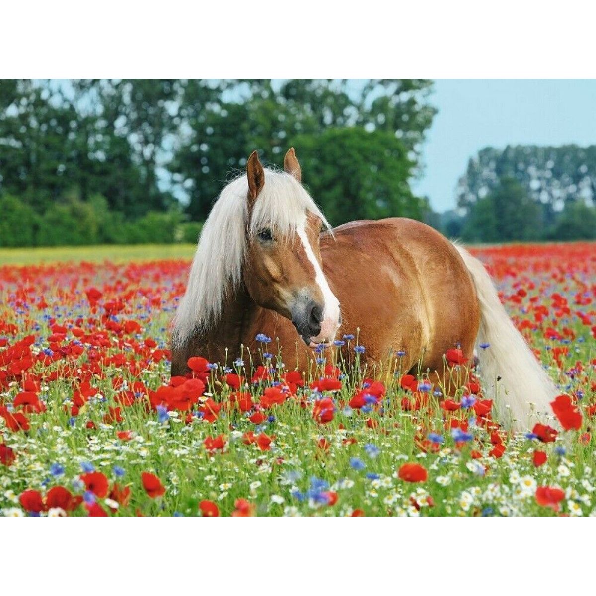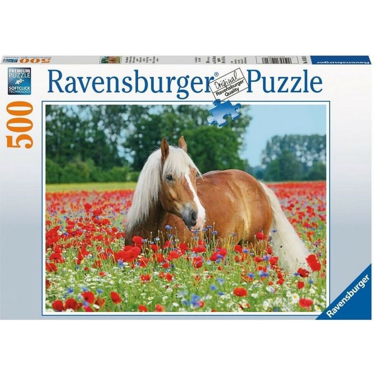 Kôň s bielou hrivou v poli vlčích makov je motívom puzzle obrázku, ktorý si deti môžu zostaviť z 500 dielikov.