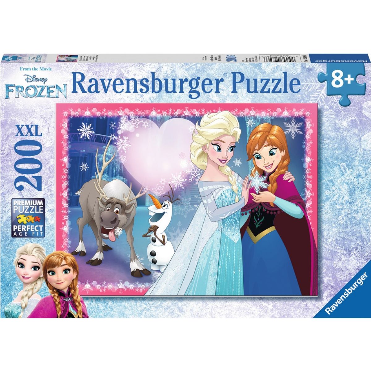 Detské 2D puzzle v licencii Ľadové kráľovstvo. Balenie obsahuje 200 XXL dielikov. Puzzle 1:1. Veľkosť obrázka po zložení je 49x36cm. Vek 8+.