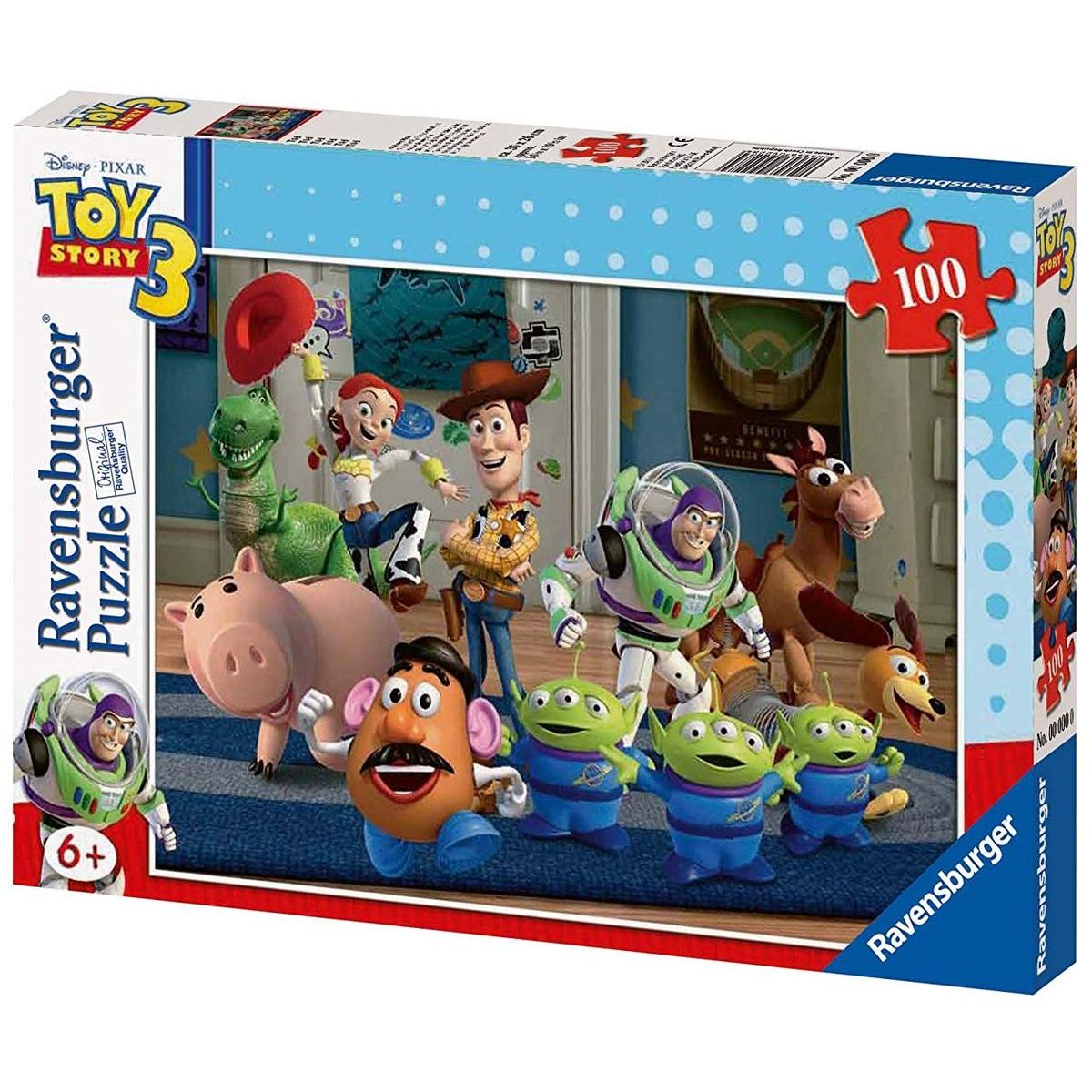 Máš rád/a hračky. Zaujíma ťa ich príbeh? Nenechaj si ujsť puzzle s originálnym motívom Toy Story 3. Čaká Ťa celkom 100 dielikov na zostavenie obrázku a vďaka tvrdému podloženiu si ho môžeš kamkoľvek vyvesiť. Rozvíjaj svoje zmysly a motoriku a uži si veľa zábavy. Špecifikácia: Rozmery balenia: 33 × 23 × 4 cm. Vhodné pre deti od 6 rokov. Rozmery zloženého obrázku: 49 × 36 cm.