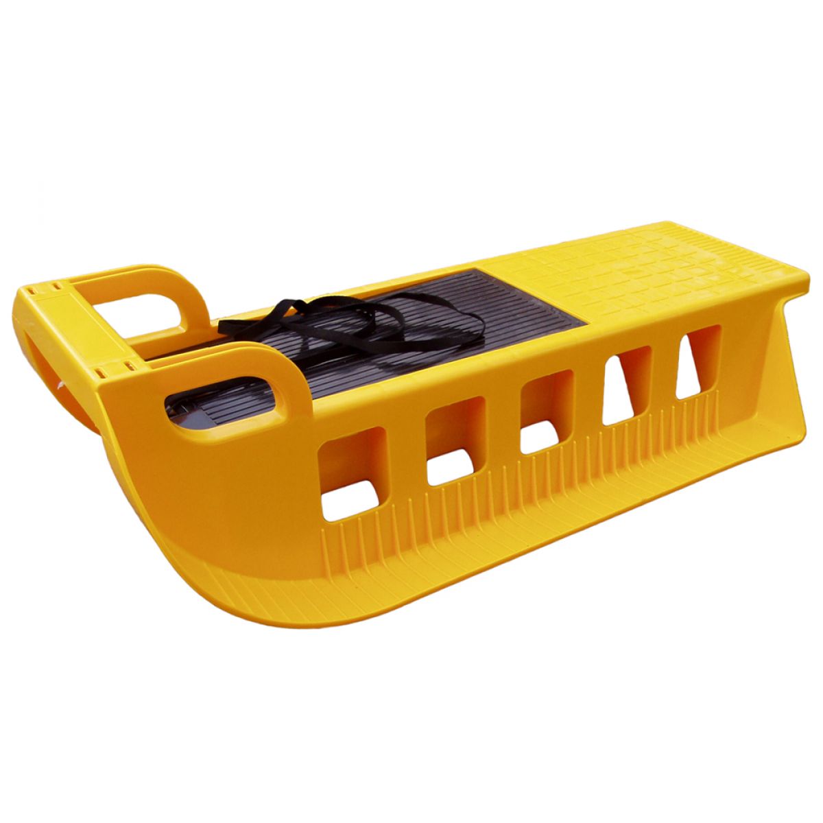 Pevné, přitom lehké plastové sáňky s popruhem pro tahání, madly a úložným prostorem na sedačce. Skluznice jsou rozšířené pro opření nohou. Plast je odolný do -20°C. Tyto sáňky si můžete vybrat z šesti barevných provedení.