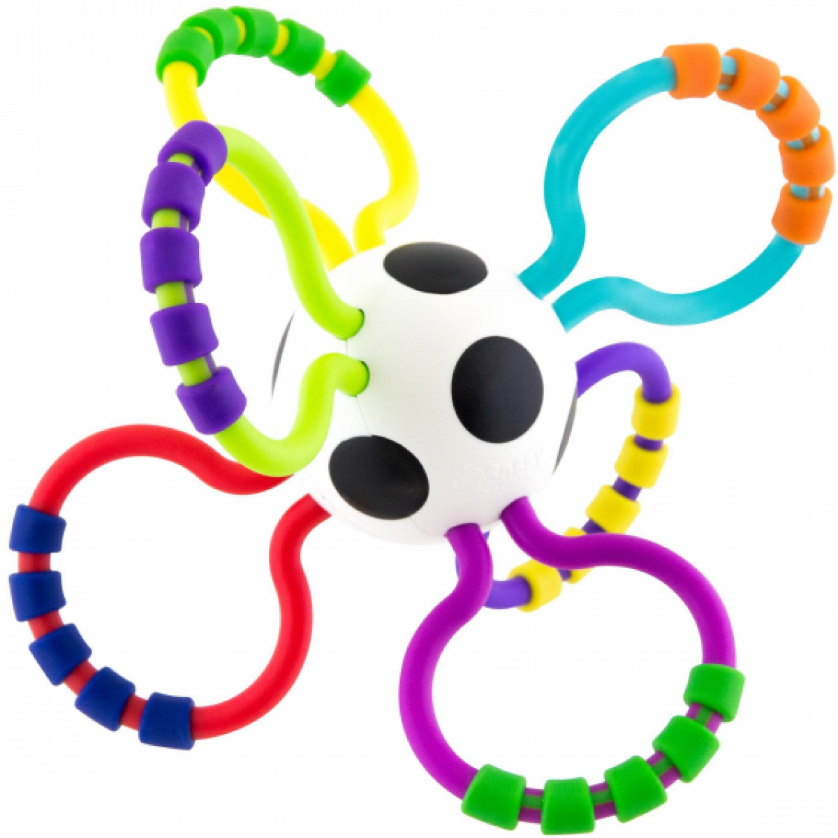 Pružné slučky na loptičky podnecujú dieťa k uchopeniu a predávaniu hračky z jednej ruky do druhej.