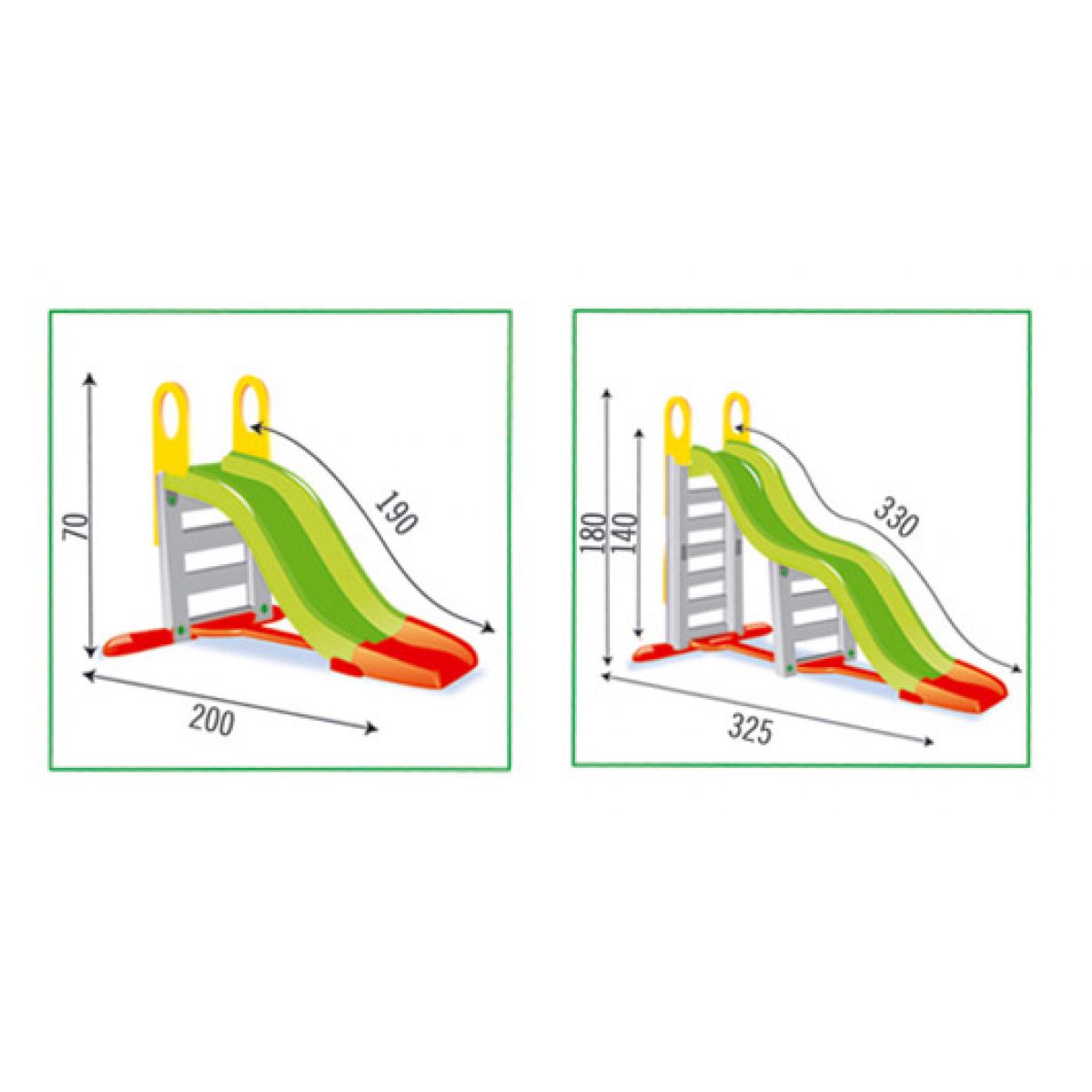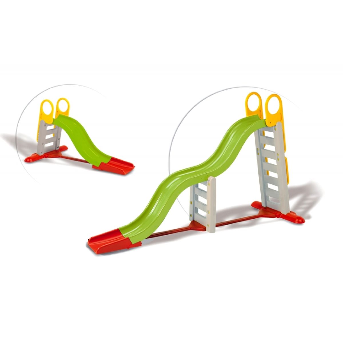 Skluzavka MEGA 2 v 1 dvojitá roste s věkem Vašeho dítěte! Klouzačku je totiž možné postavit ve dvou verzích. Malá nízká verze vyhovuje menším dětem přibližně od dvou let. V okamžiku, kdy je už malá skluzavka přestane bavit, můžeme klouzačku přestavět na větší verzi s více než tři metry dlouhou skluznou plochou a vlnou. Žebřík skluzavky je vybaven madly, která dětem umožňují pohodlnější a bezpečné držení při výstupu a přesahují i nad nástupní prostor skluzavky.