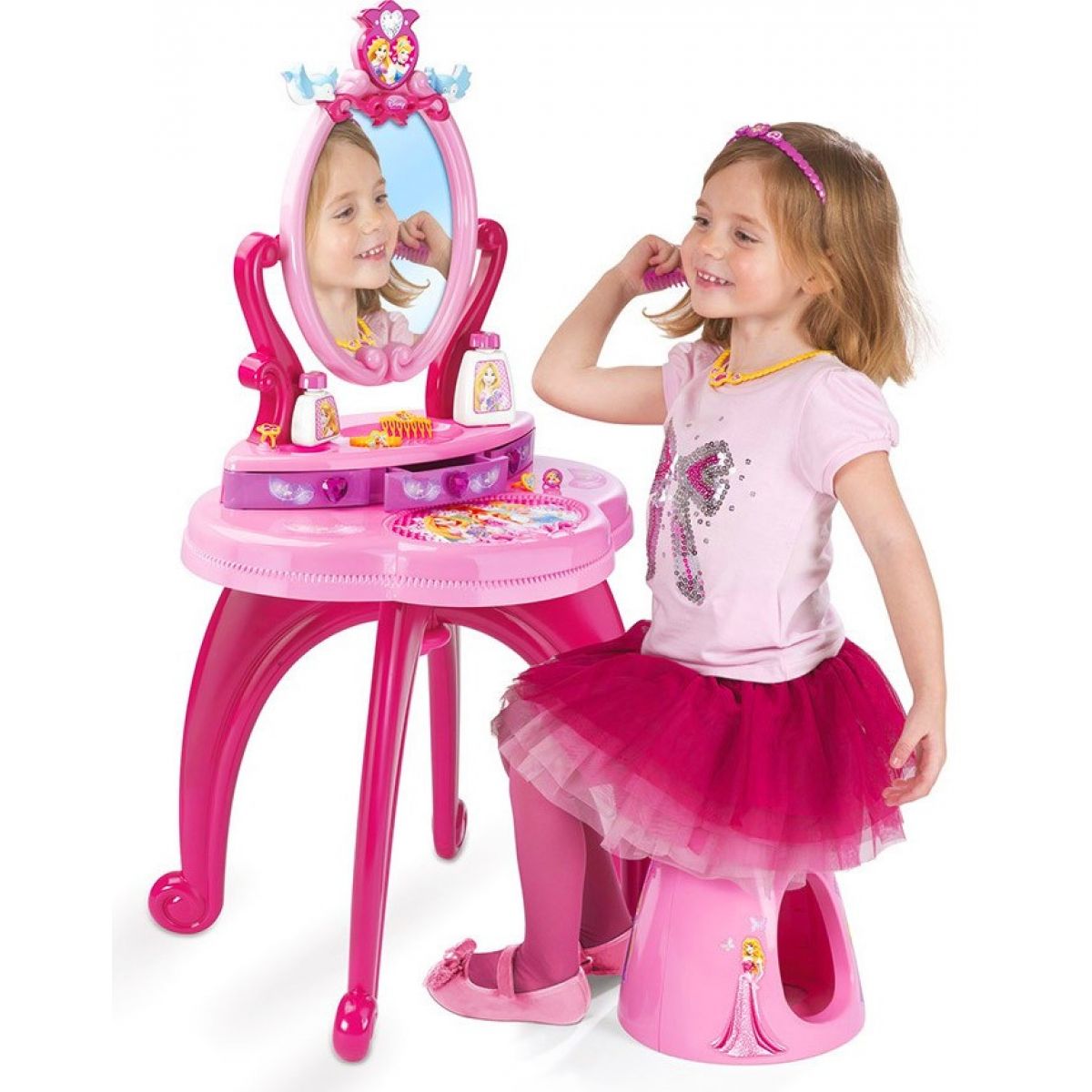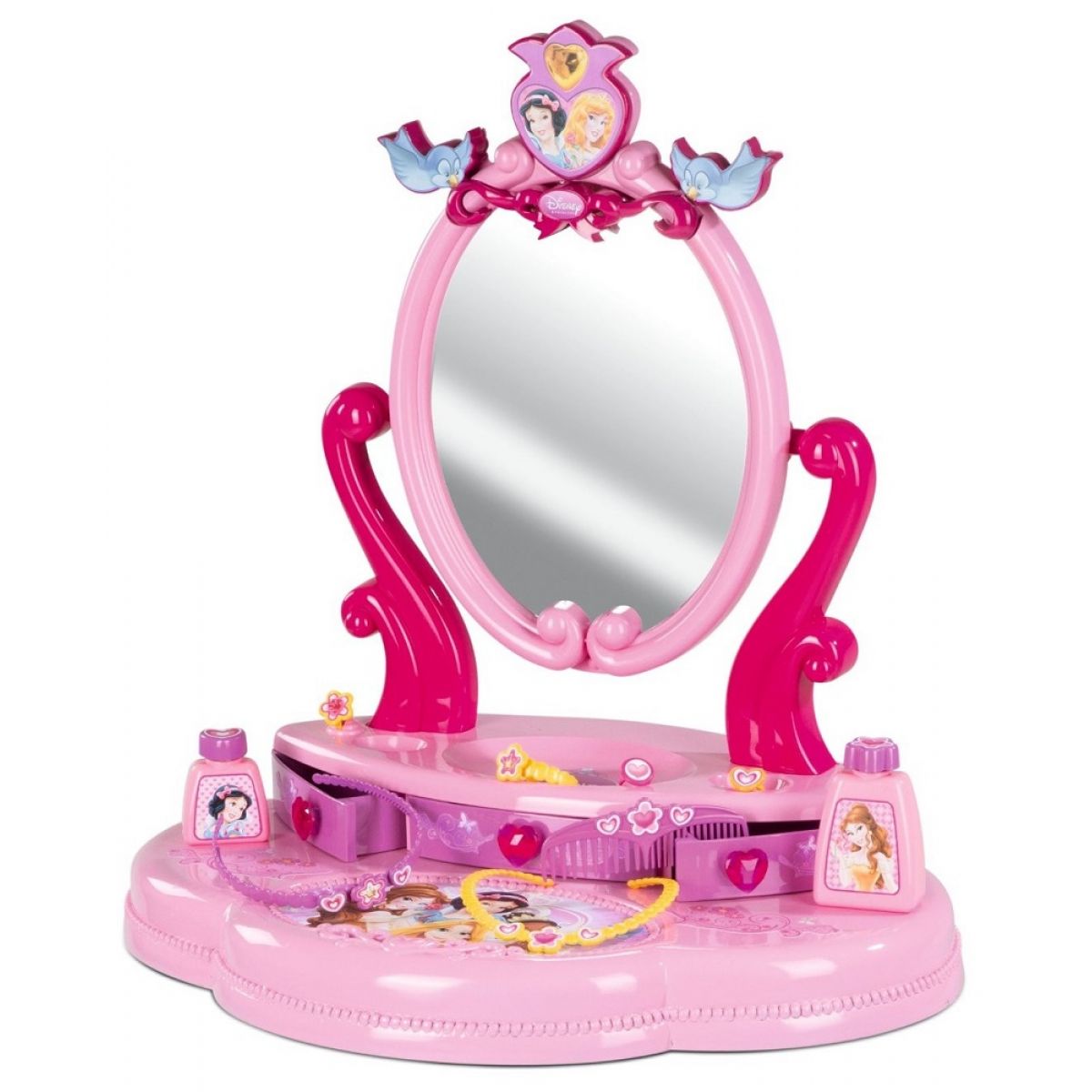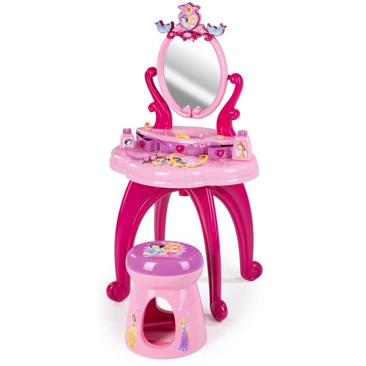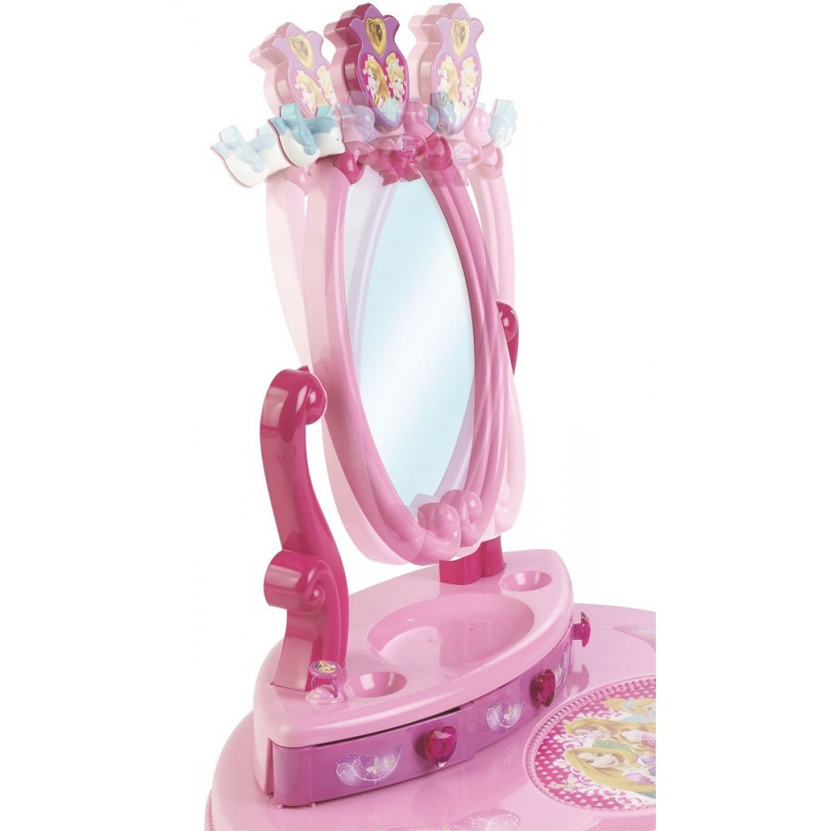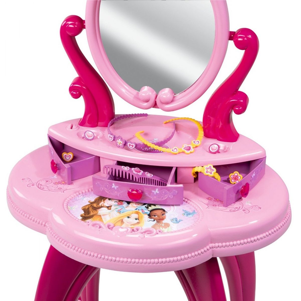 Velký plastový kosmetický stolek se židličkou je proveden v růžových barvách s motivy Disney Princess. Je opatřen velkým naklápěcím zrcadlem, třemi malými zásuvkami na drobnosti. Součástí balení jsou i hřebeny, čelenky, prstýnky a náramek. Hračku ocení především holčičky, které se rády parádí a hrají si na princezny.