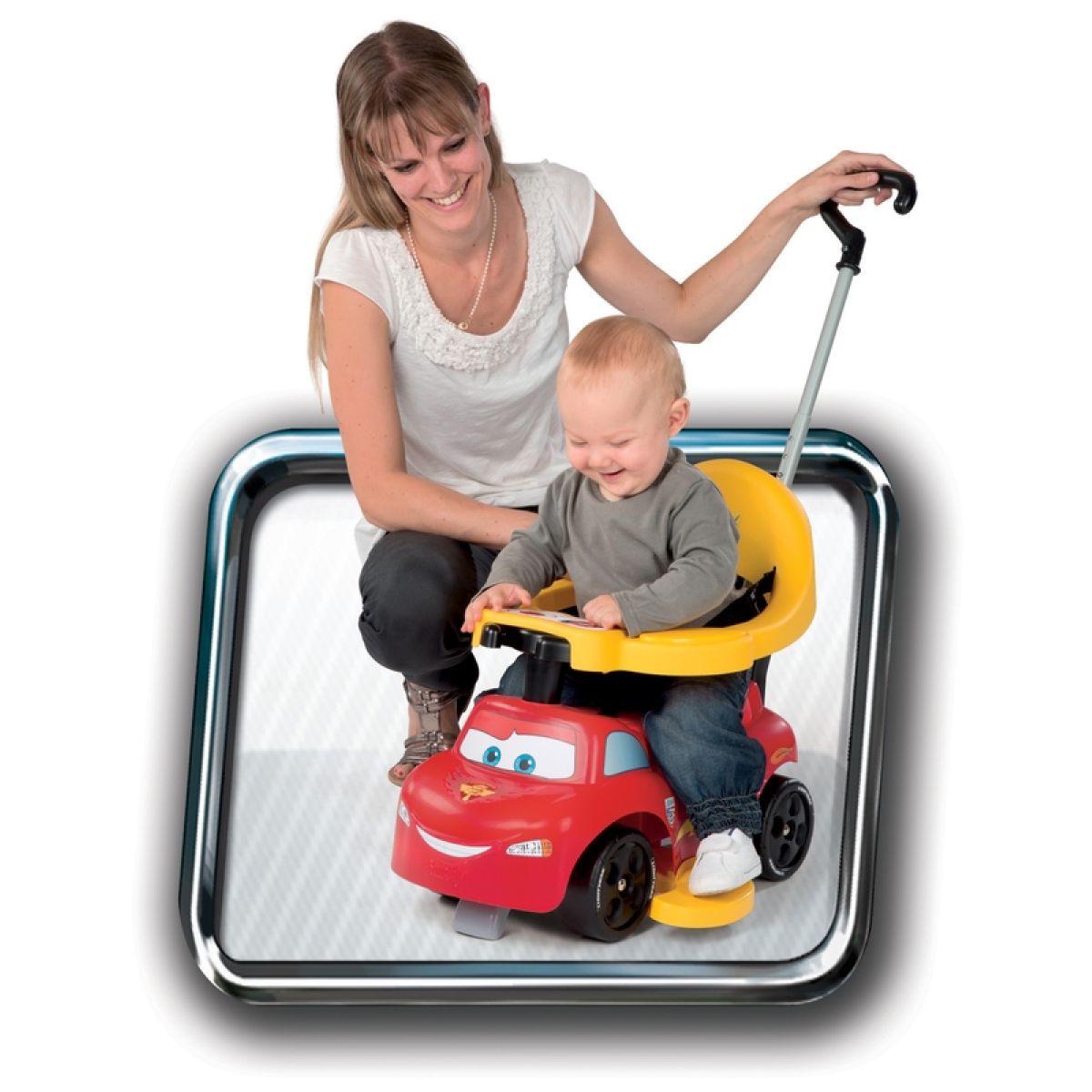 Skvělé multifunkční jezdítko pro nejmenší děti. Může sloužit jako vozítko, chodítko nebo odrážedlo. Pro nejmenší děti připevníme opěrku s bezpečnostními popruhy a opěrky pod chodidla. Děťátko do autíčka posadíme a vozíme pomocí vodící tyče. Pokud odstraníme opěrky chodidel a bezpečnostní ohrádku, může auto sloužit jako odrážedlo. Pod vypolstrovaným sedátkem je úložný prostor pro hačky. Díky mnoha funkcím auto poroste s dítětem až do batolecího věku a přinese spoustu zážitků. Lze používat v interiéru i venku.