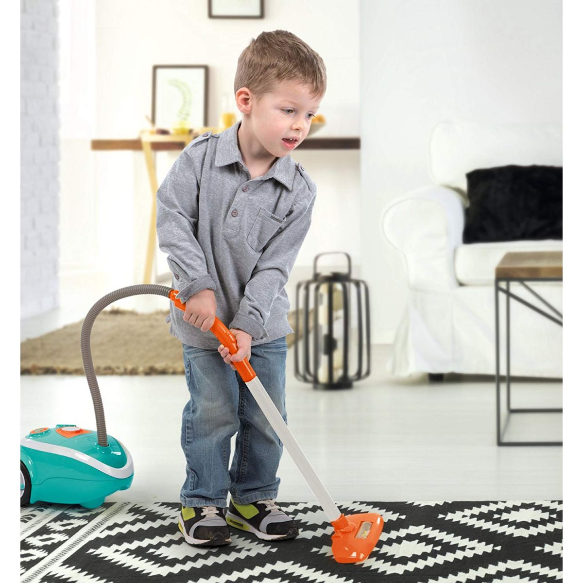 Elektronický vysávač pre deti sa zvuky vysávania. Pripomína tak skutočný vysávač. Detský vysávač Smoby má moderný elegantný dizajn a je vo farebnej kombinácii svetlo zelenej, bielej. Vyrobený je z odolných plastov, ktoré sú na dotyk veľmi príjemné. Dve kolieska uľahčujú manipuláciu. Na zelenom nástavcami je priesvitný otvor s farebnými guličkami, ktoré imitujú povysávané smeti, a tak deti získavajú dojem, že ich vysávač skutočne vysáva. Rozmer balenia: 26,8 x 20,7 x 17 cm Hmotnosť balenia: 0,8 kg Materiál: nezávadný plast. Batéria: 3x LR144 (sú v balení). Vhodné od 3 rokov.