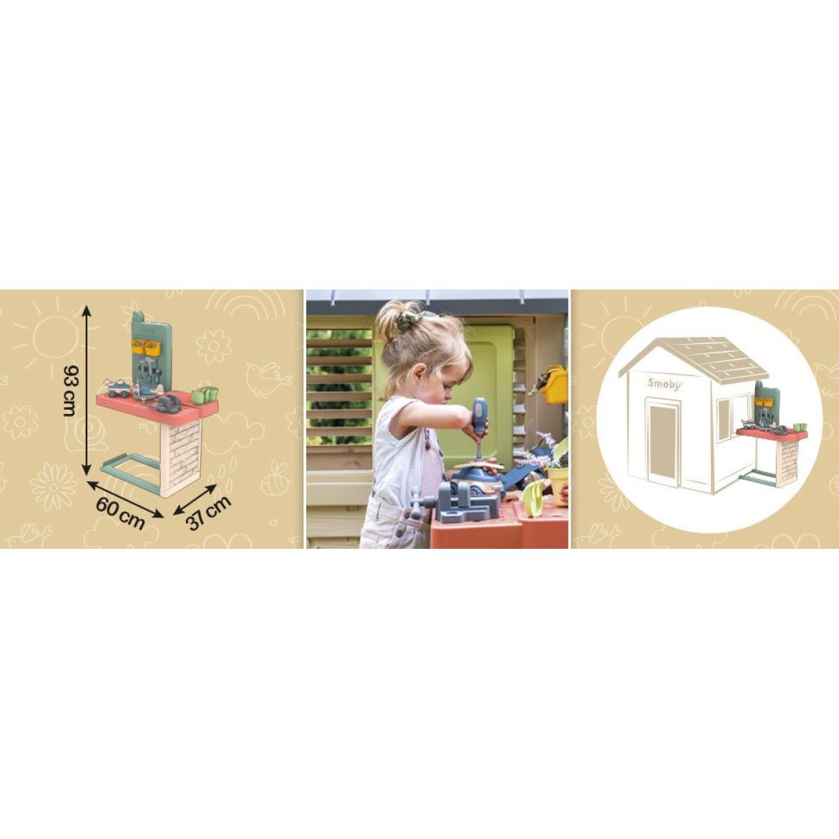 Vyrobené z kvalitného plastu odolného voči UV žiareniu a poveternostným vplyvom, táto dielňa poteší každého malého kutila.