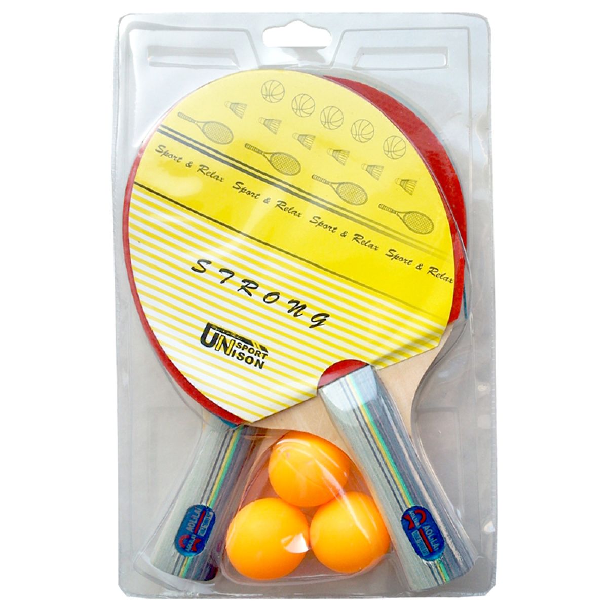 Souprava na stolní tenis STRONG obsahuje dvě kvalitní pálky na stolní tenis a tři míčky. Pálky mají na obou stranách kvalitní a silný potah.