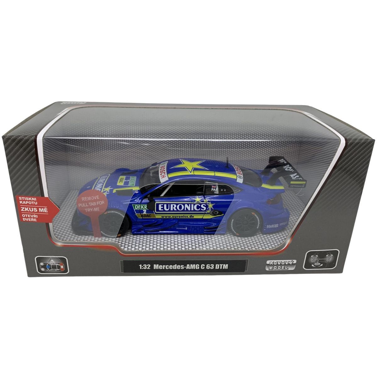 Kovové autíčko Sparkys Mercedes-Benz AMG C63 DTM poteší malých pretekárov od troch rokov.